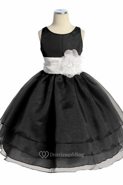 Tea-Length Tiered Organza Flower Girl Dress