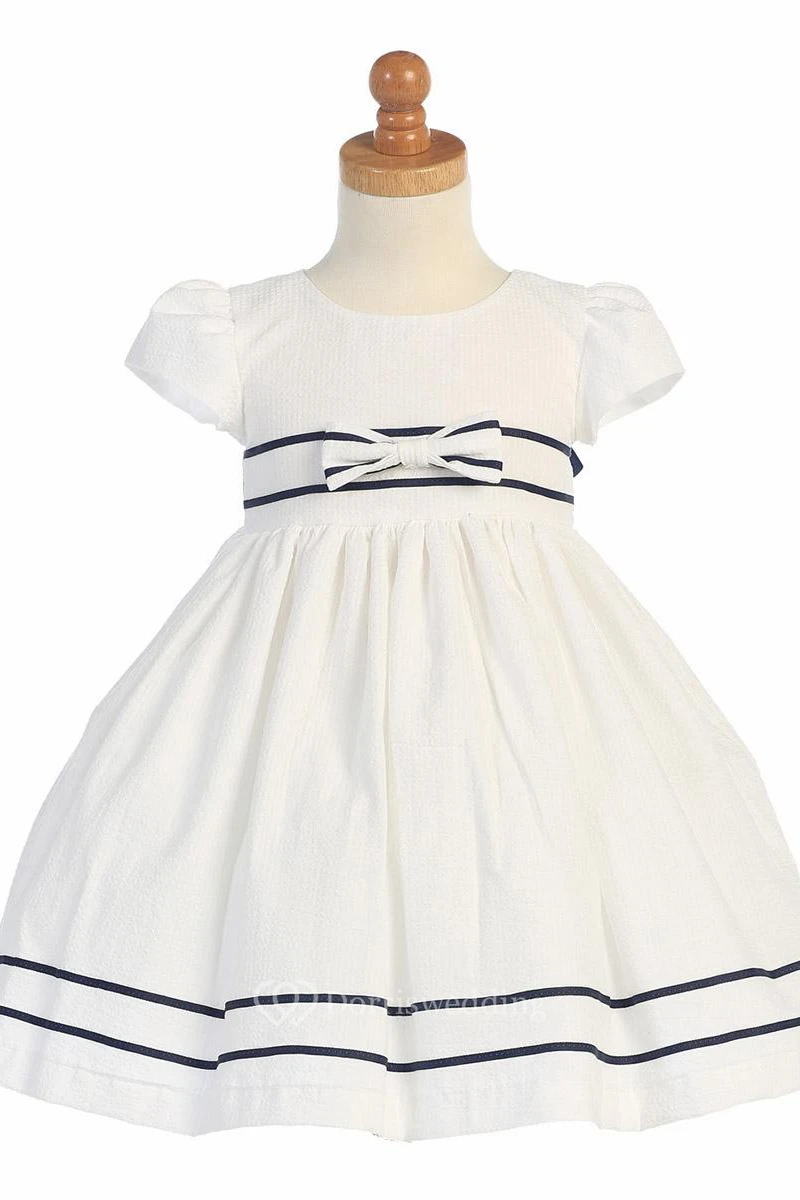 Tea-Length Tiered Pleated Flower Girl Dress With Sash