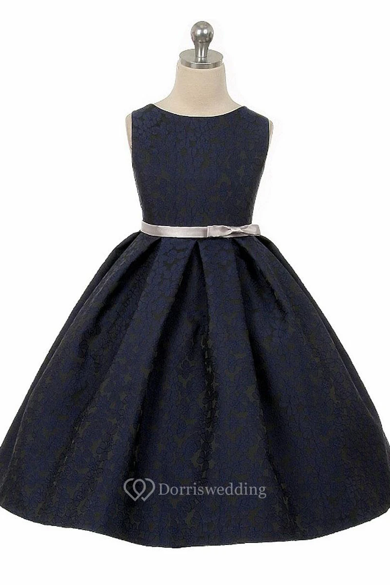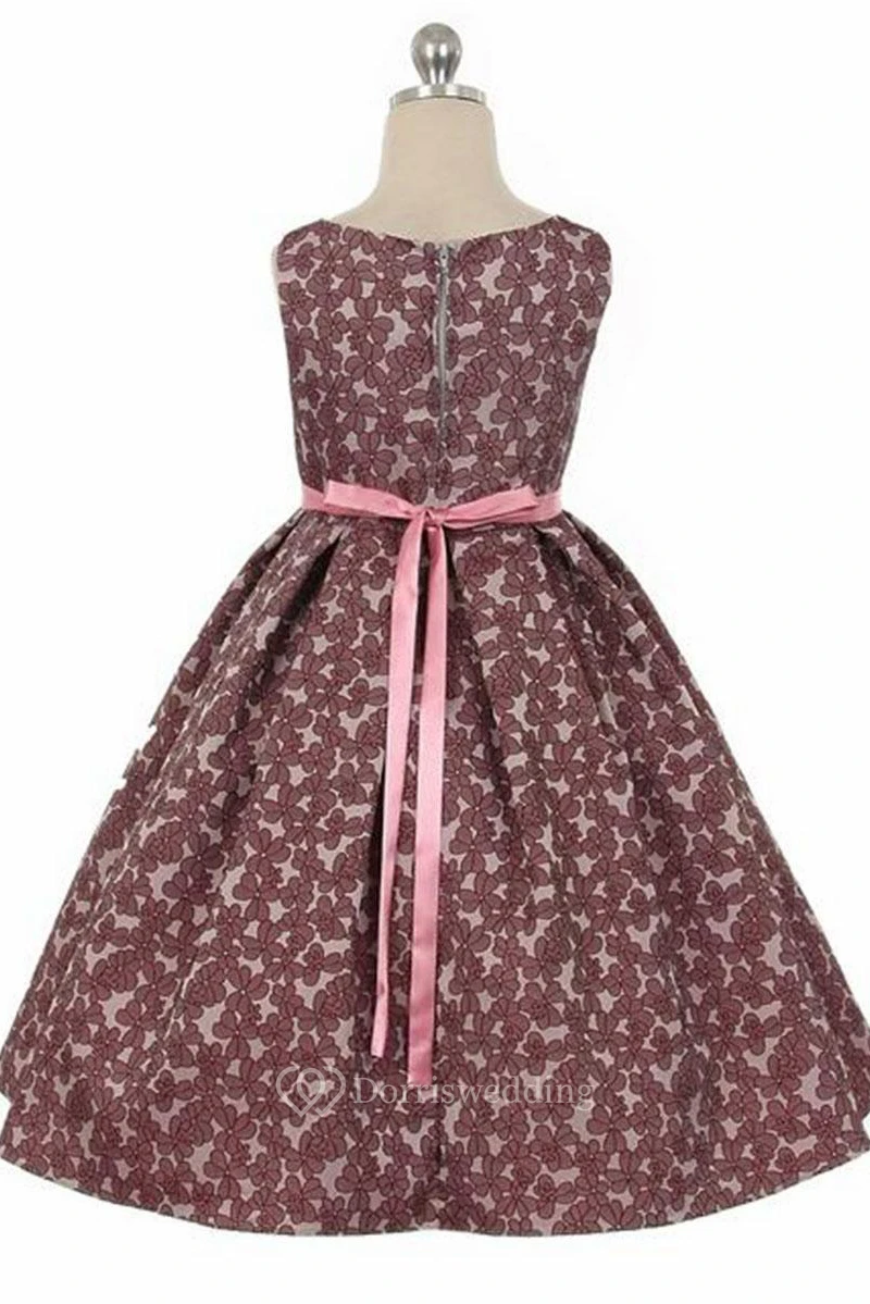 Tea-Length Tiered Pleated Satin Flower Girl Dress