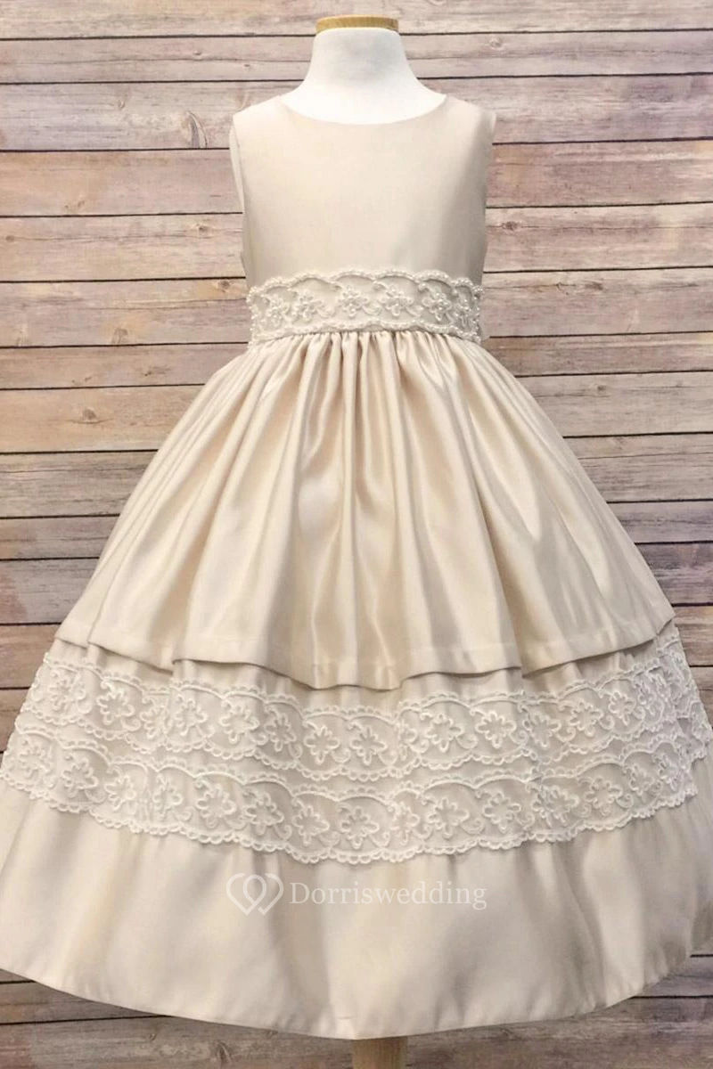 Tea-Length Tiered Sequined Tulle&Lace Flower Girl Dress