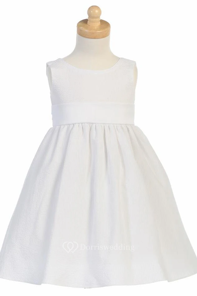 Tea-Length Tiered Sleeveless Flower Girl Dress