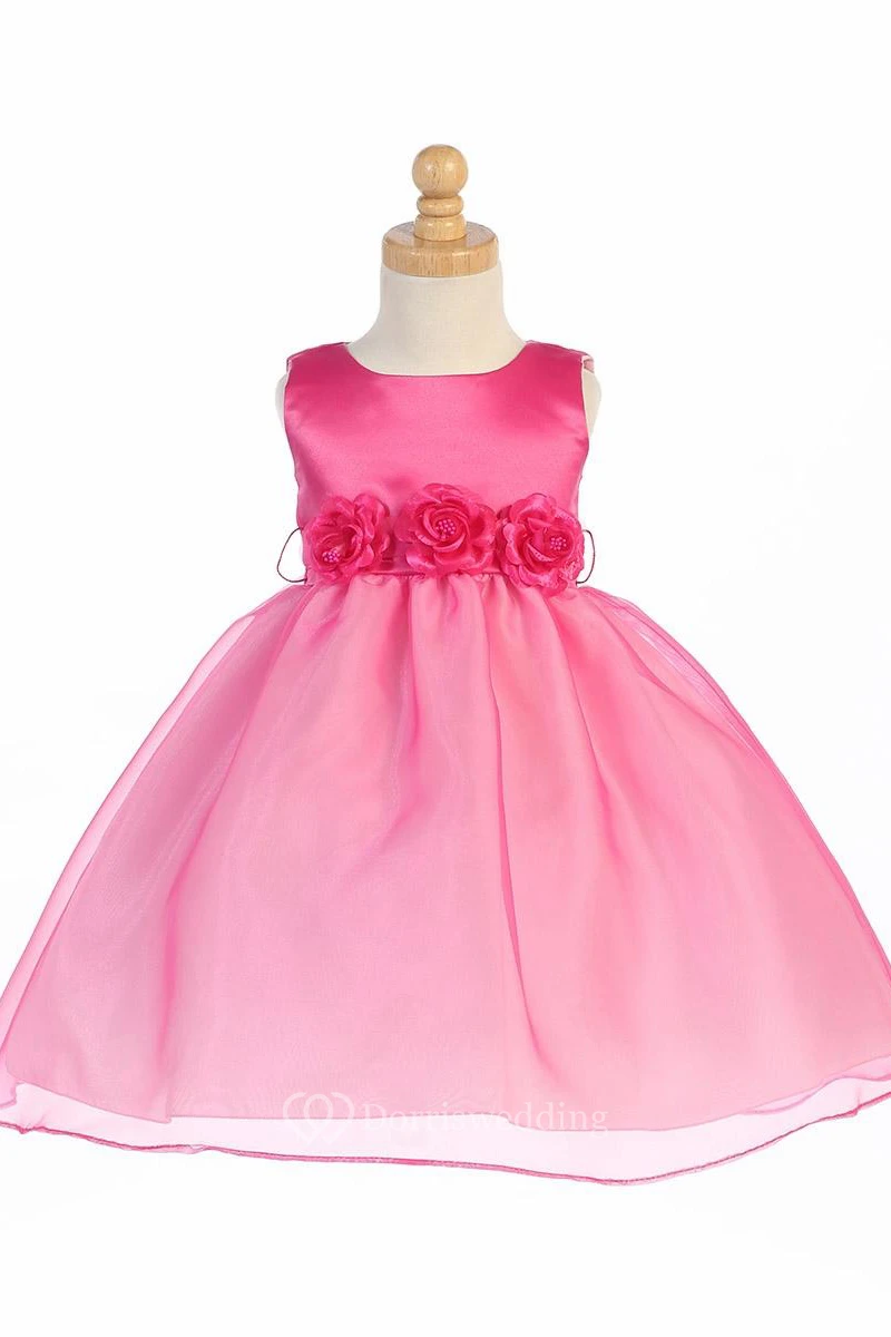 Tea-Length Tiered Sleeveless Organza&Satin Flower Girl Dress