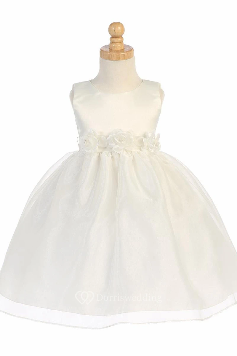 Tea-Length Tiered Sleeveless Organza&Satin Flower Girl Dress