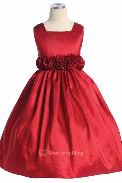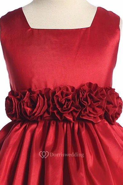 Tea-Length Tiered Taffeta Flower Girl Dress
