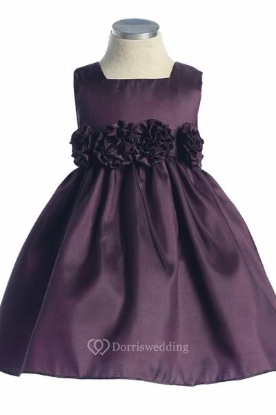 Tea-Length Tiered Taffeta Flower Girl Dress