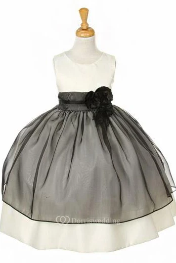 Tea-Length Tiered Tulle&Organza Flower Girl Dress