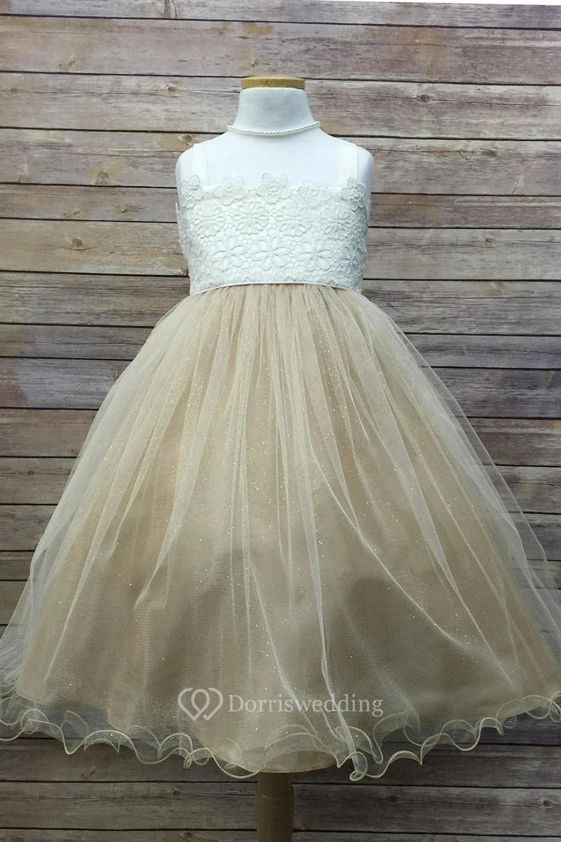 Tea-Length Tiered Tulle&Satin Flower Girl Dress