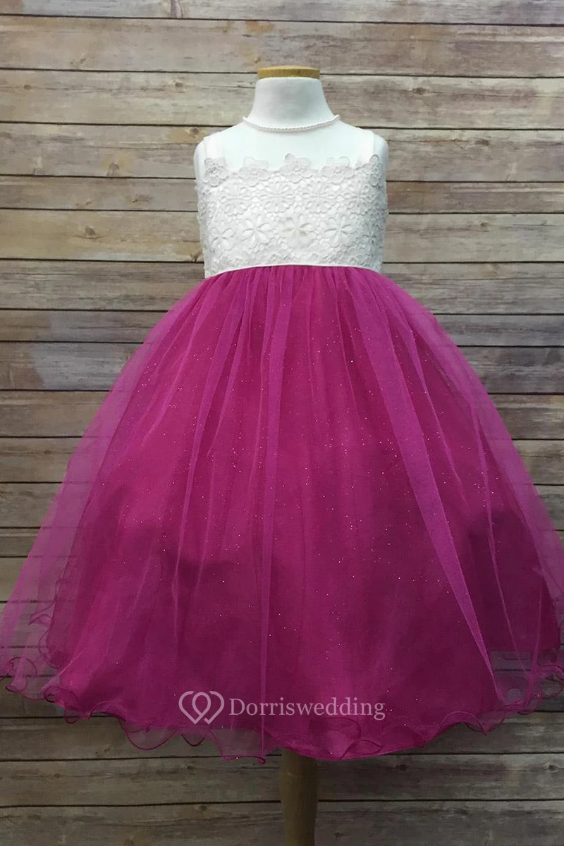 Tea-Length Tiered Tulle&Satin Flower Girl Dress