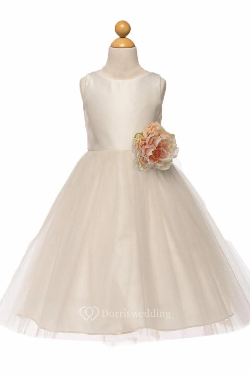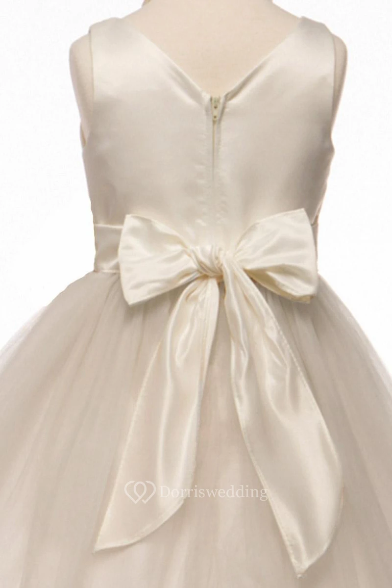 Tea-Length Tiered Tulle&Satin Flower Girl Dress