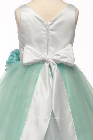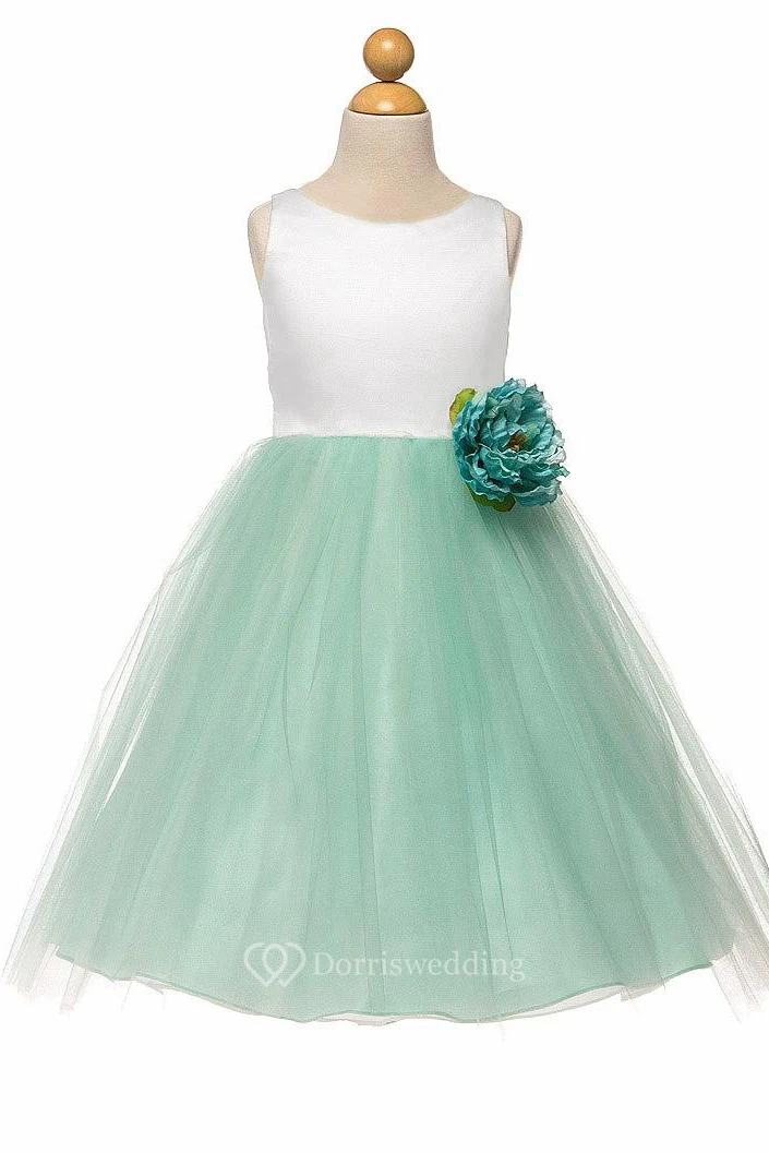 Tea-Length Tiered Tulle&Satin Flower Girl Dress