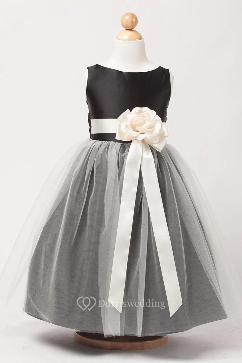 Tea-Length Tiered Tulle&Satin Flower Girl Dress