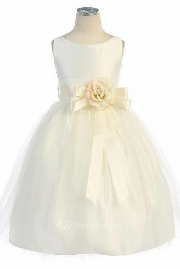 Tea-Length Tiered Tulle&Satin Flower Girl Dress