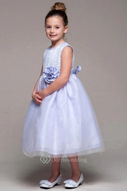 Tea-Length Tulle&Sequins Flower Girl Dress