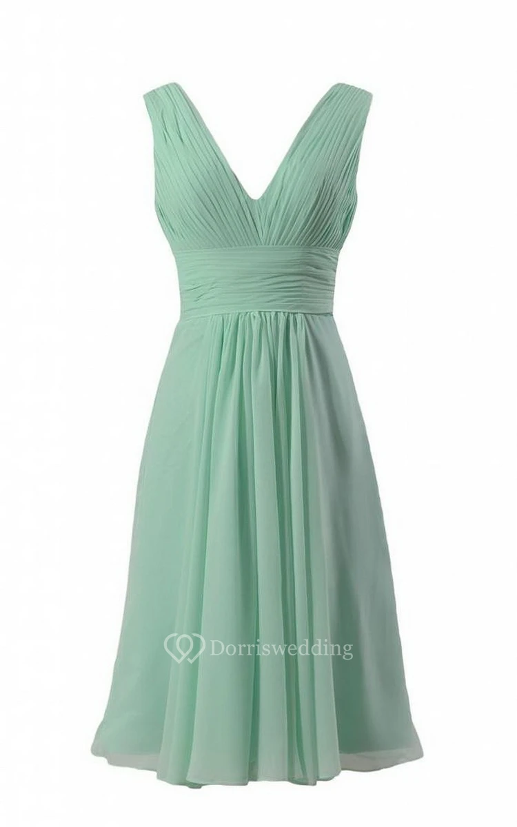 Tea-length V-neck Pleated A-line Dress With Deep-v Back