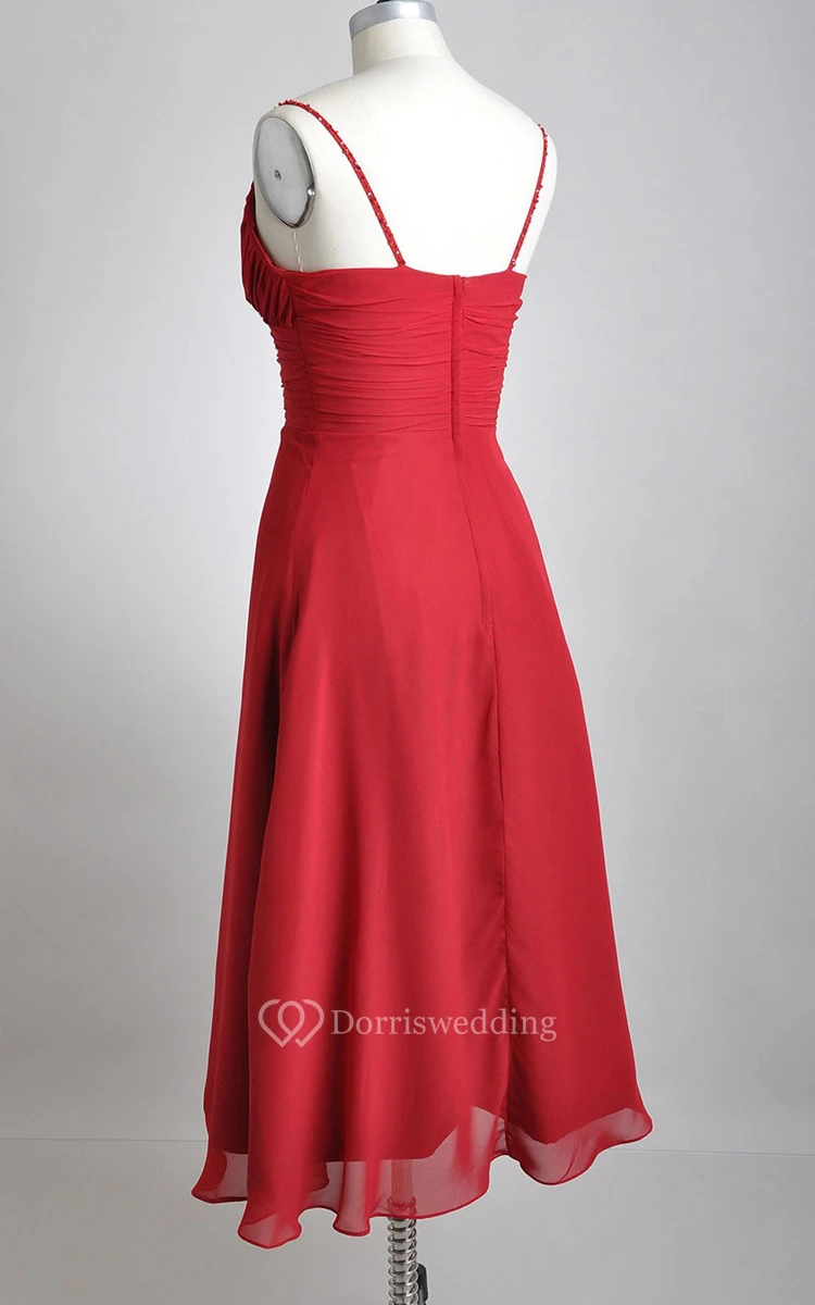 Tea-length V-Neckline A-line Chiffon Teal Bridesmaid Dress With Spaghette Straps
