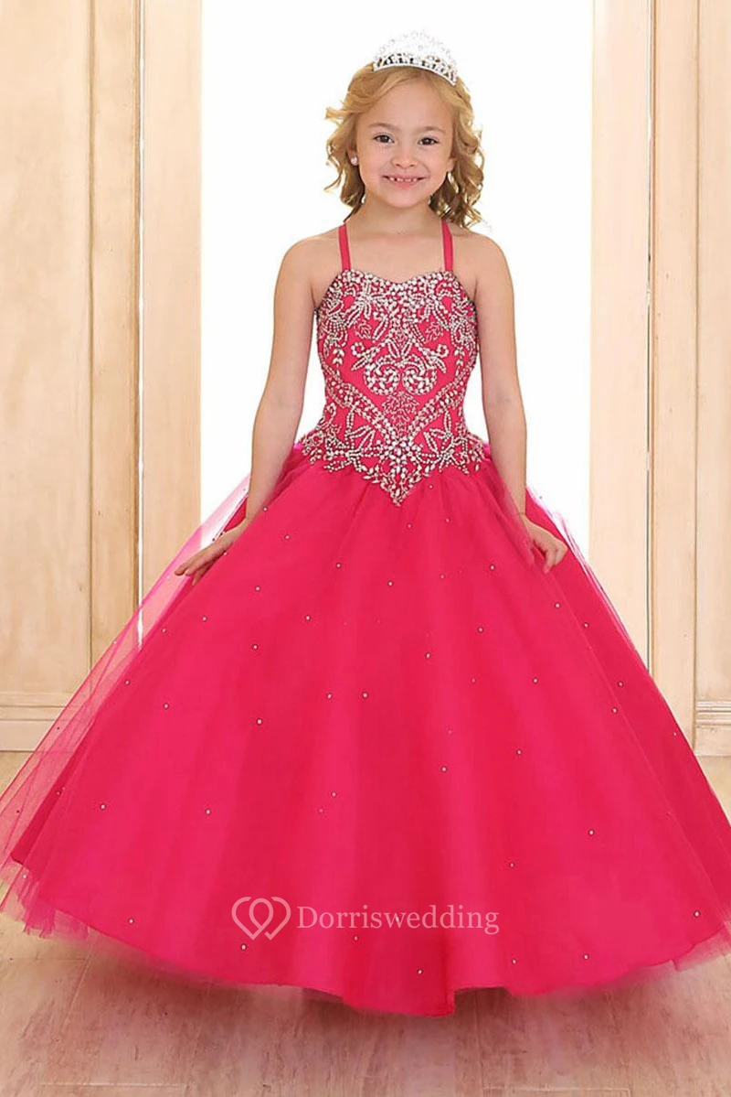 Tiered Beaded Tulle&Lace Flower Girl Dress With Corset Back
