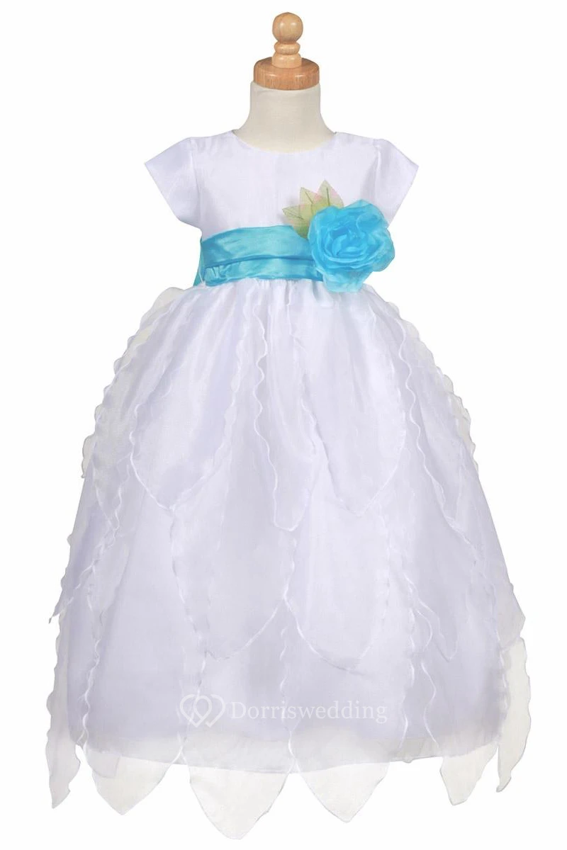 Tiered Cap-Sleeve Organza&Taffeta Flower Girl Dress