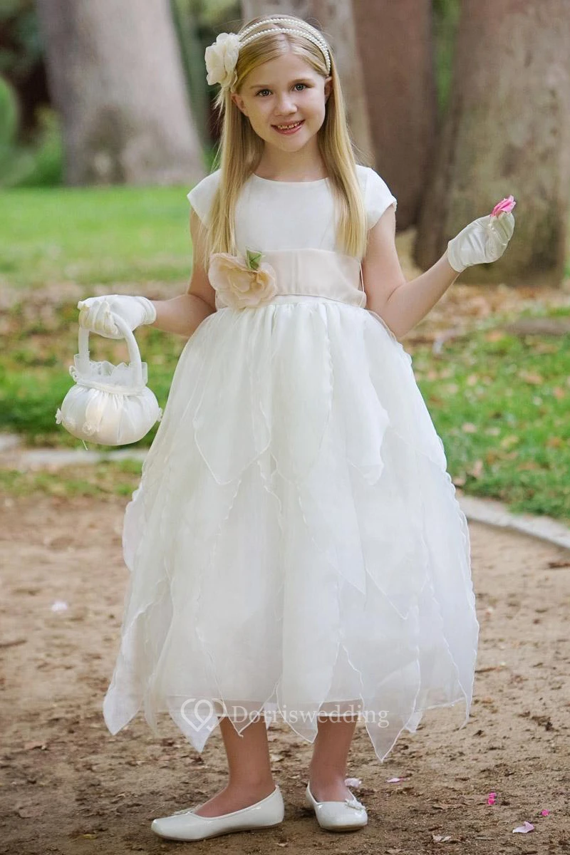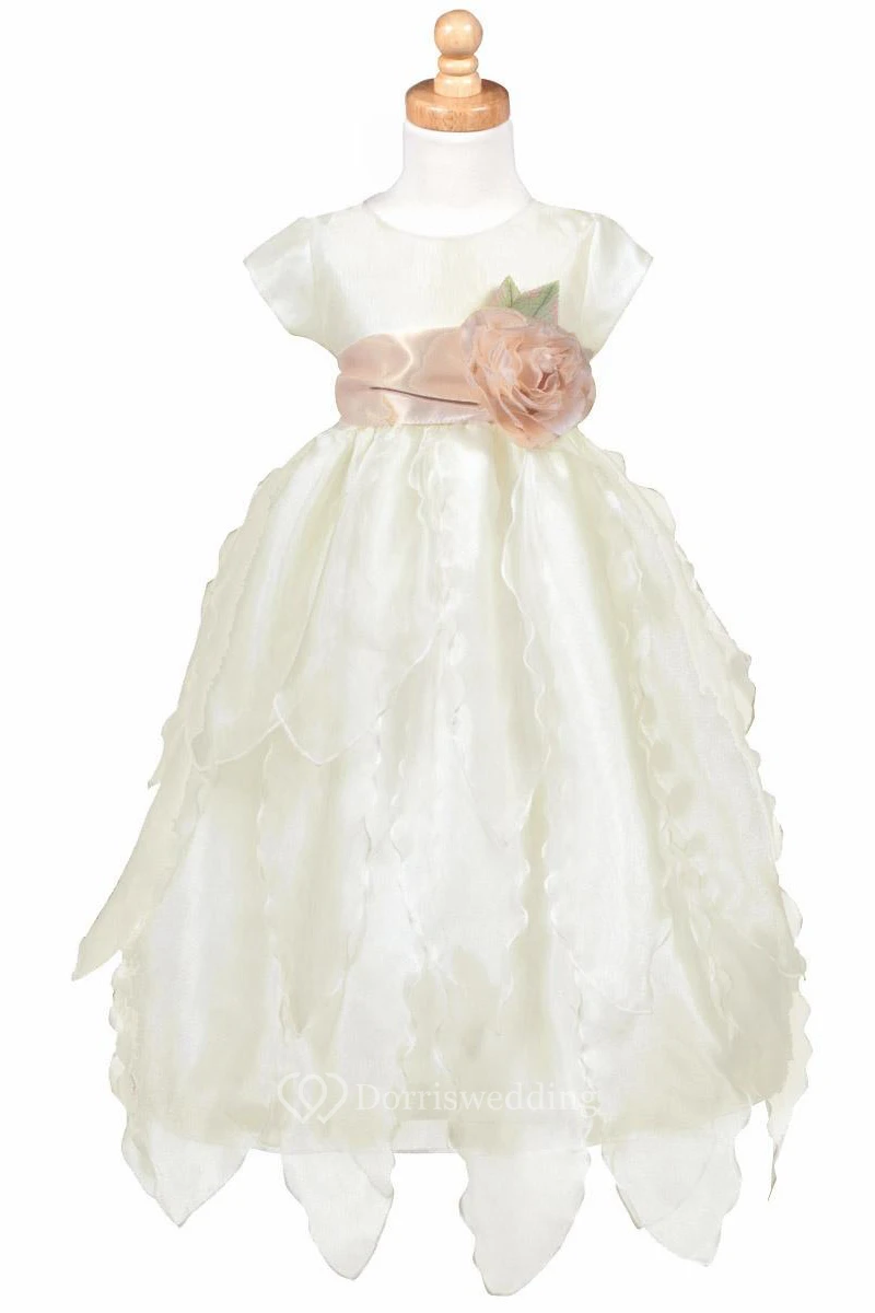 Tiered Cap-Sleeve Organza&Taffeta Flower Girl Dress