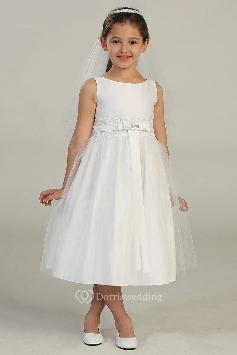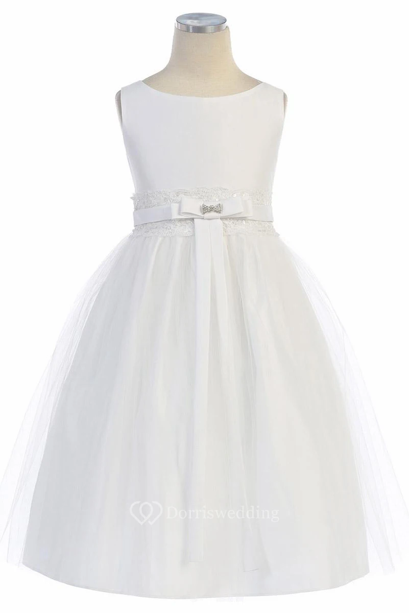 Tiered Tulle&Lace Flower Girl Dress With Broach