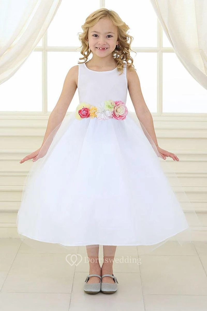 Tiered Tulle&Satin Flower Girl Dress