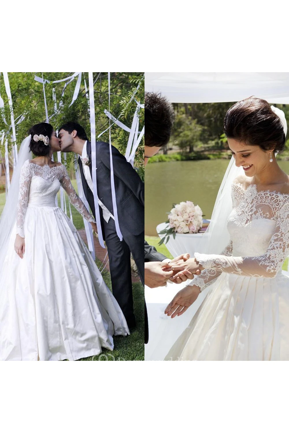 Timeless Lace Appliques Princess Wedding Dress Long Sleeve