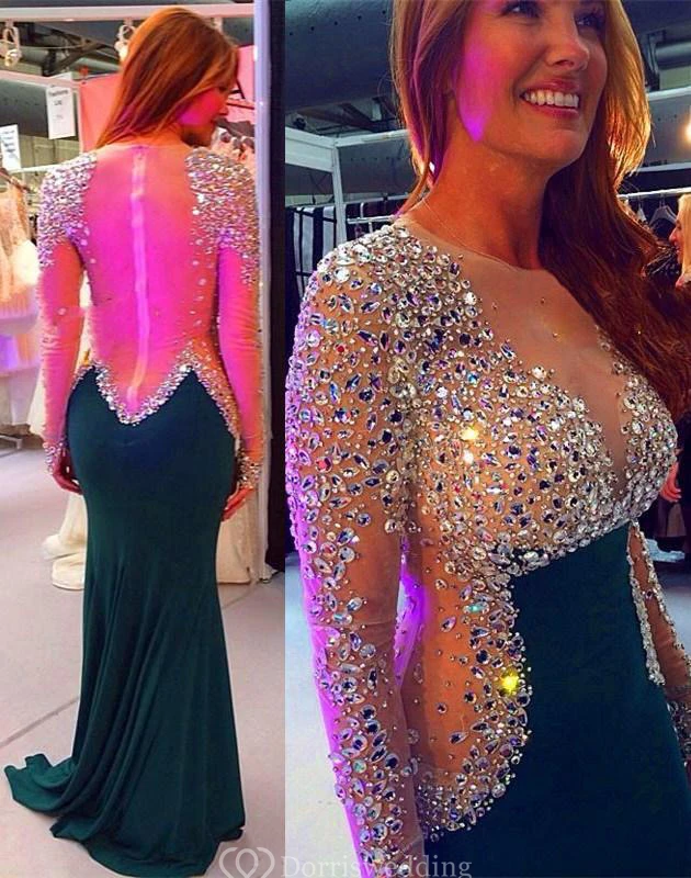Timeless Long Sleeve Mermaid Evening Dresses Crystals Zipper Back