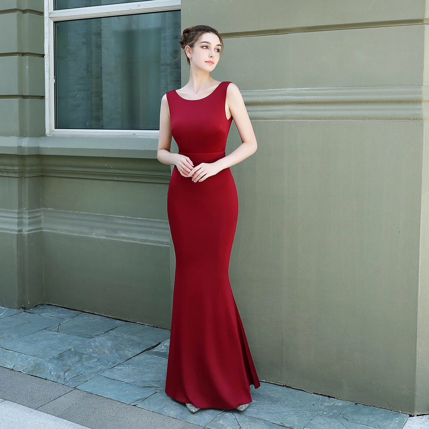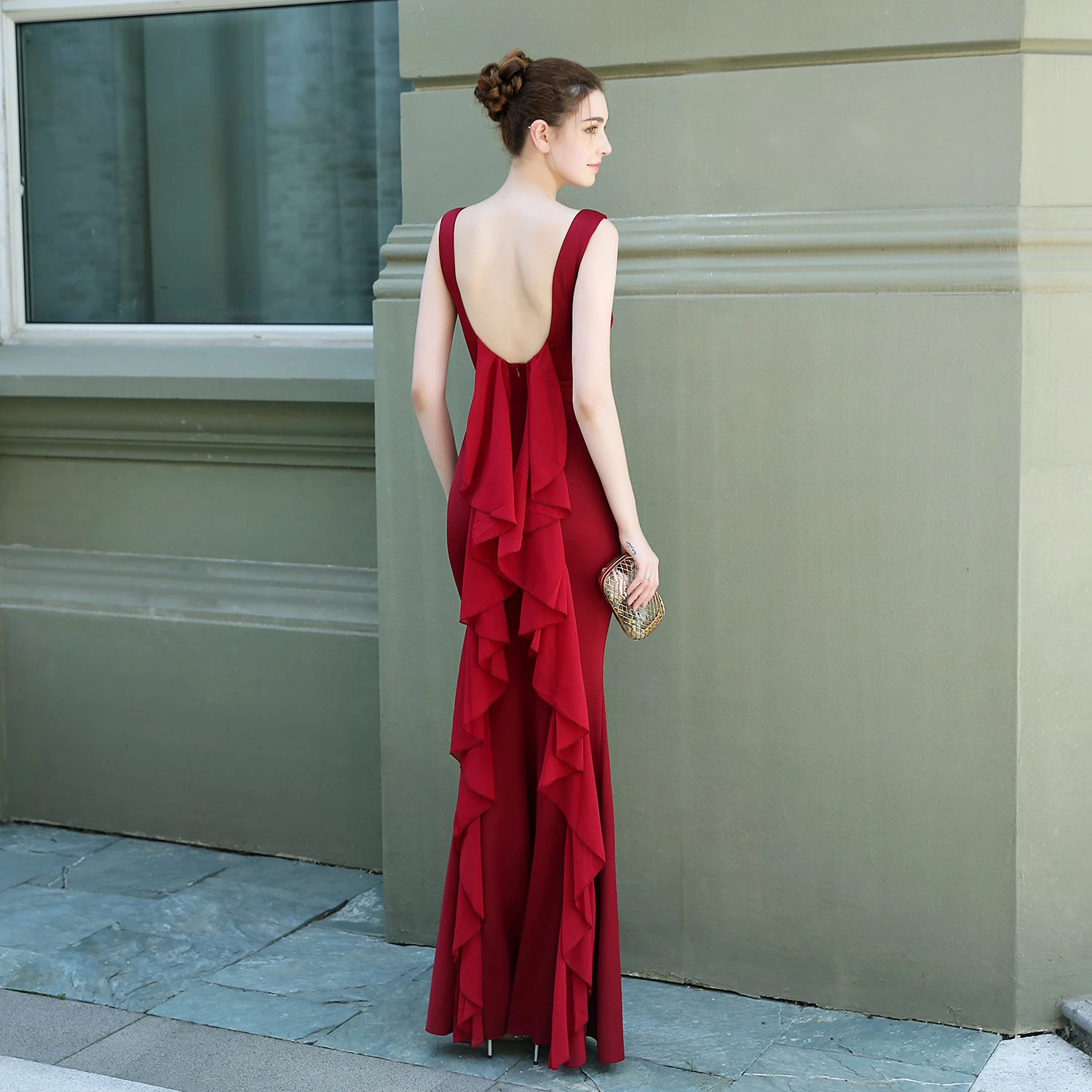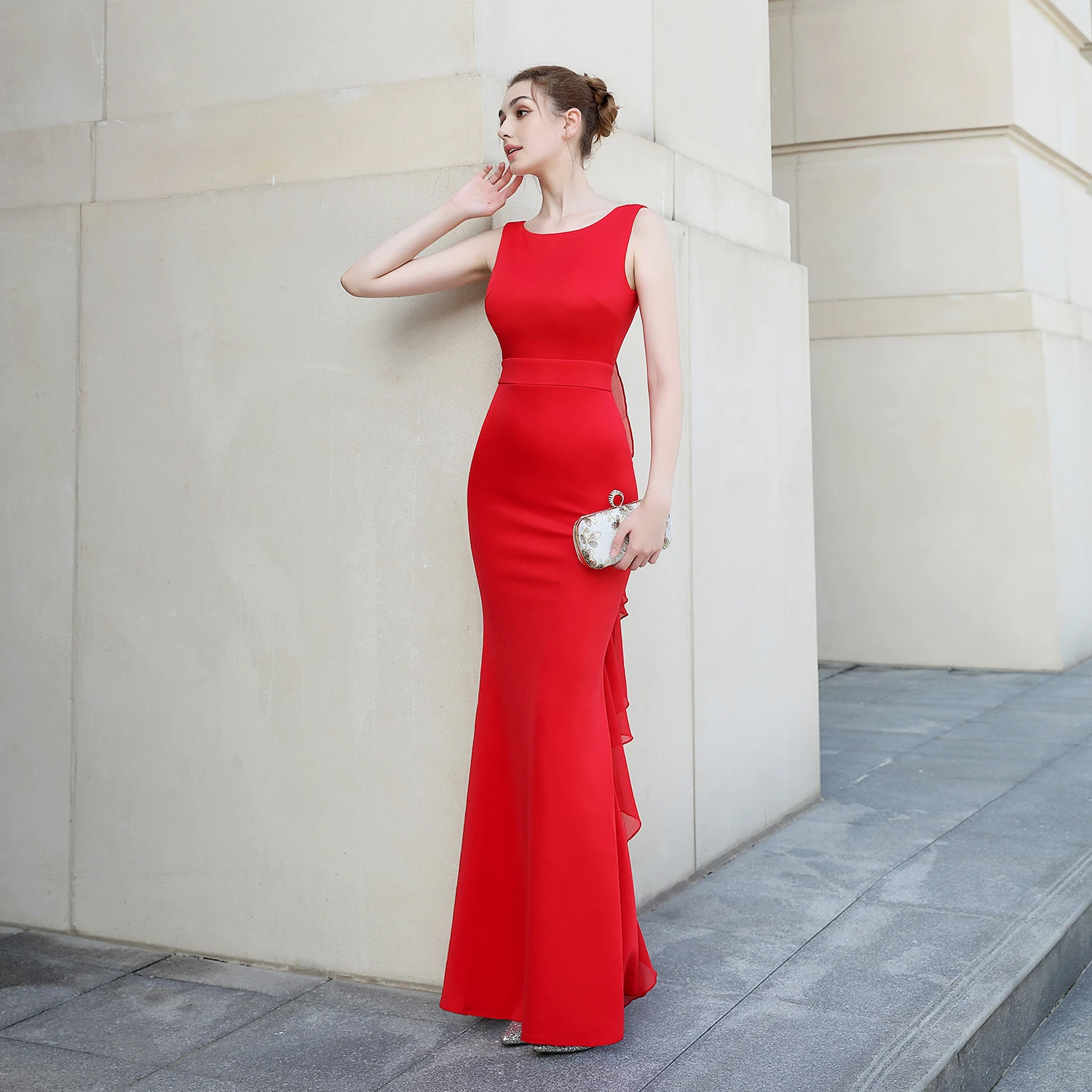 Toast Dress Bride Long Sleeveless Red Thank-You Banquet Slim Fishtail Skirt Wedding Car Model Meeting Exhibition Dress
