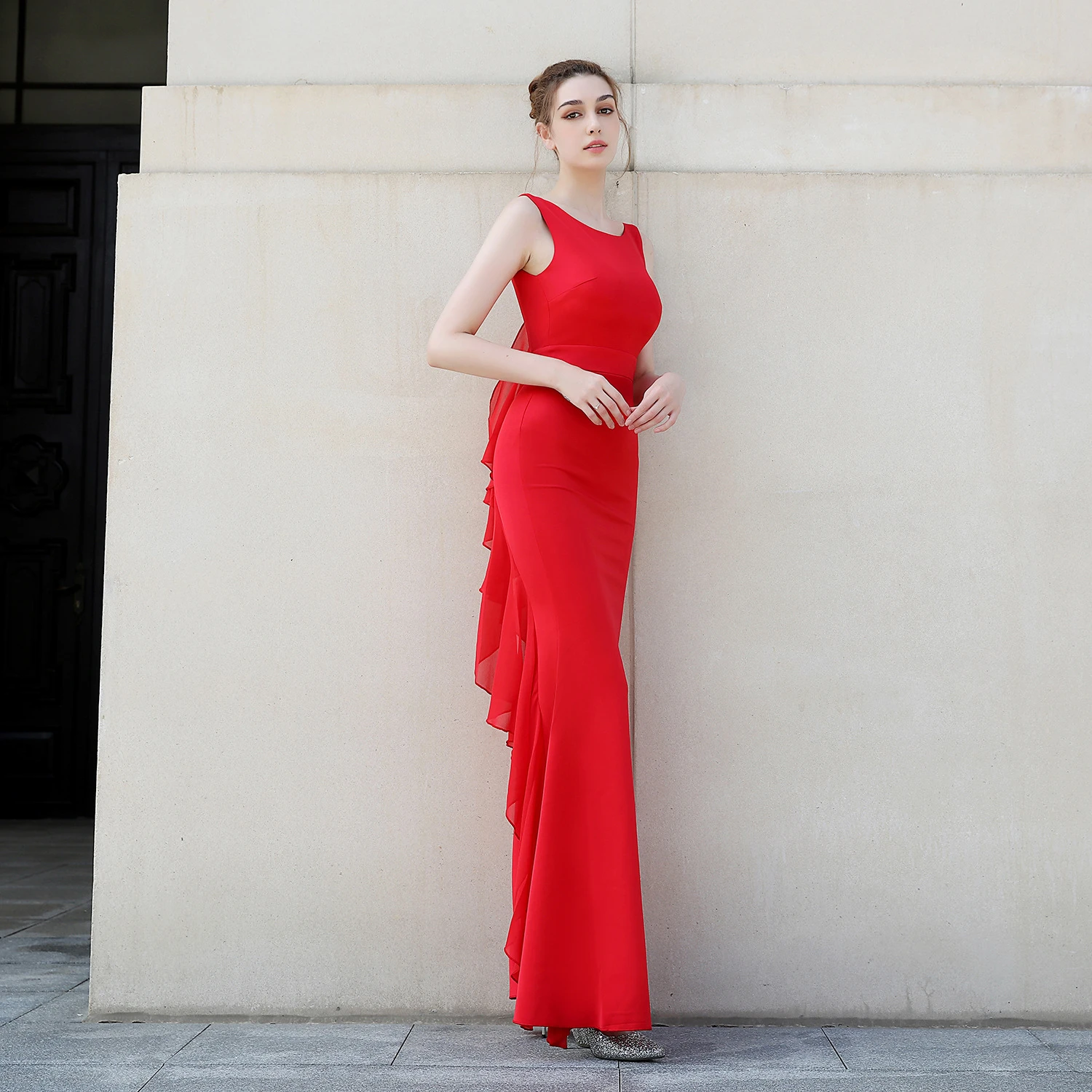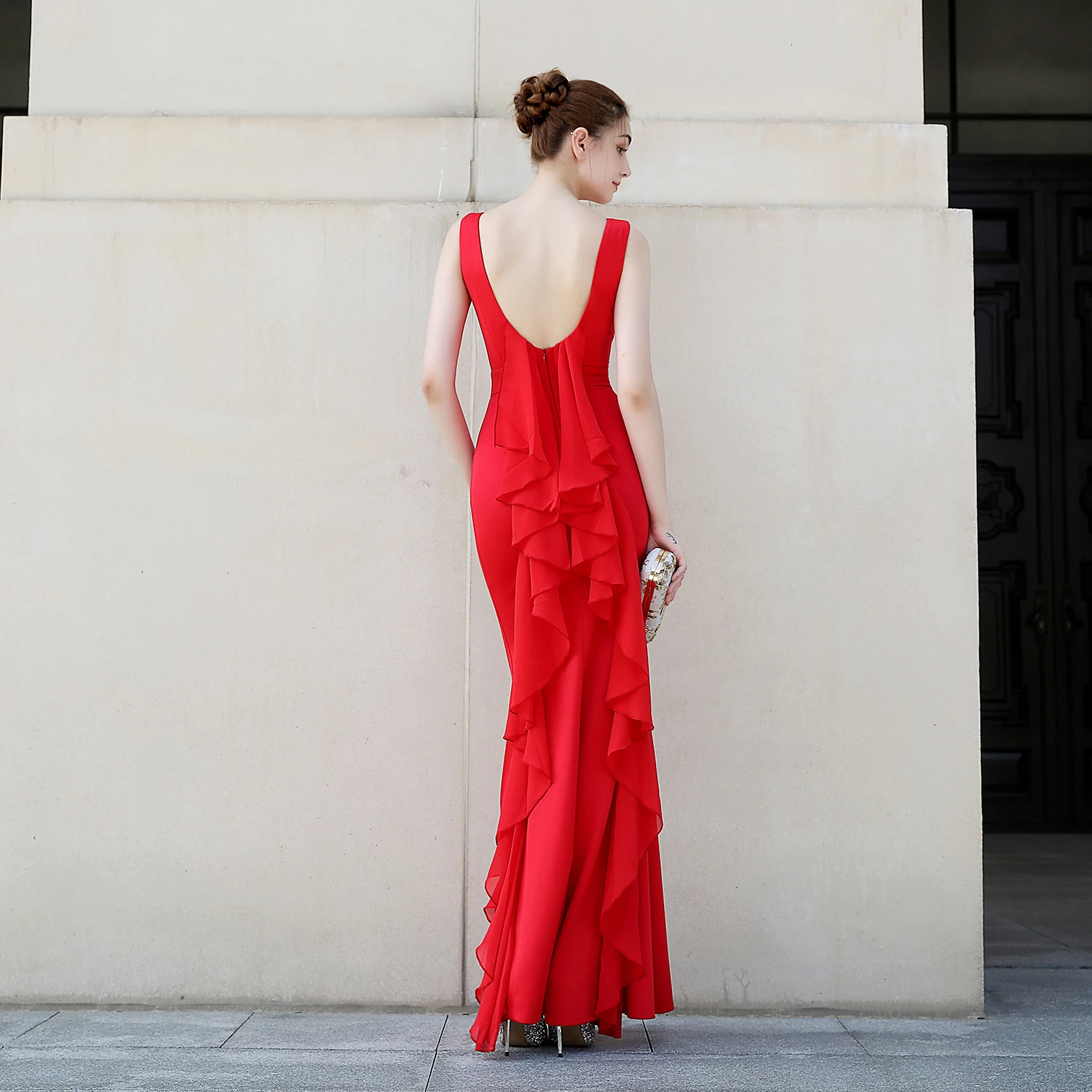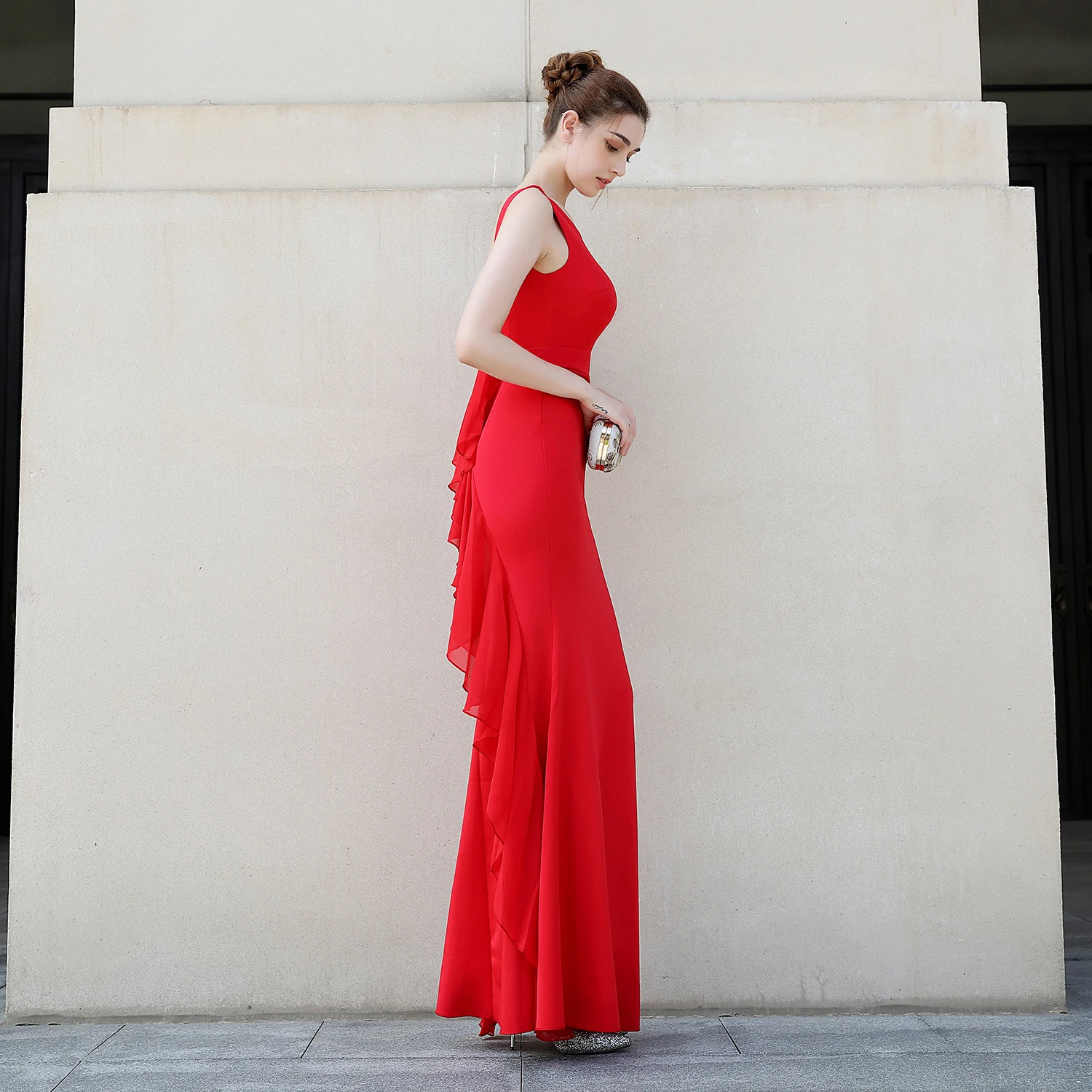 Toast Dress Bride Long Sleeveless Red Thank-You Banquet Slim Fishtail Skirt Wedding Car Model Meeting Exhibition Dress