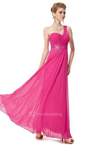 Trendy A-Line One-Shoulder Rhinestones Long Prom Dress