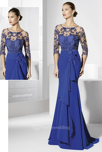 Trumpet Appliqued Long Strapless Sleeveless Lace Wedding Dress