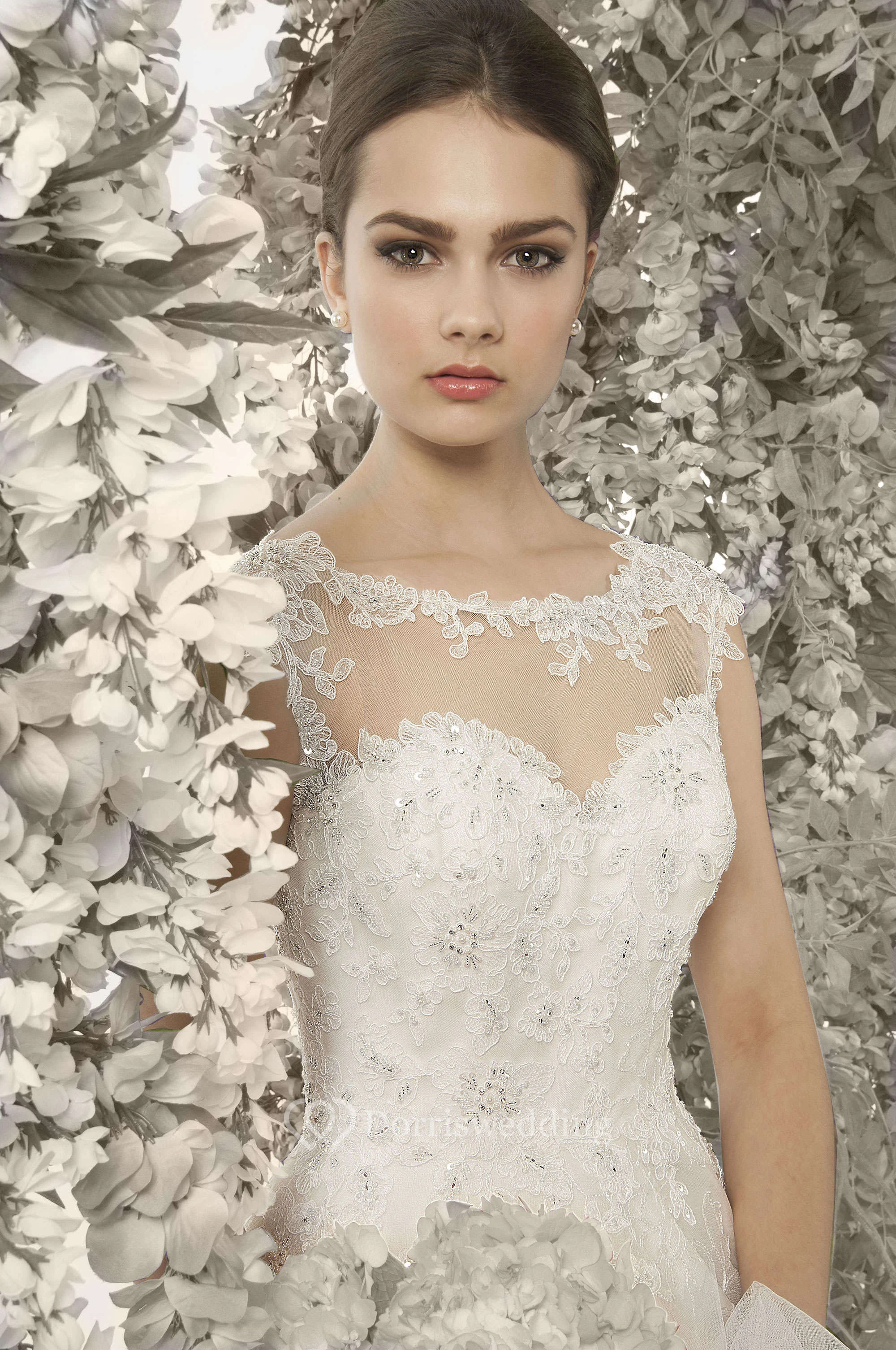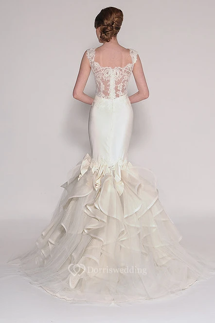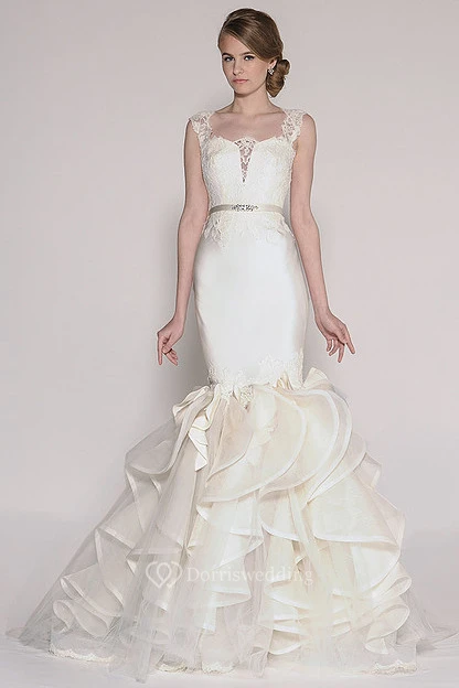 Trumpet Appliqued Sleeveless Long Satin Wedding Dress With Draping