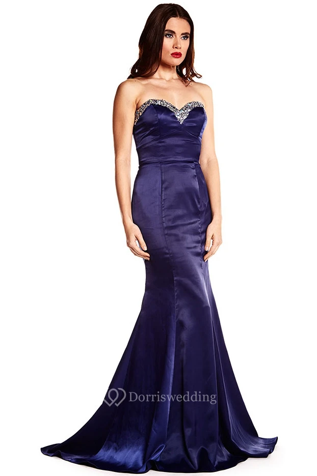 Trumpet Beaded Sleeveless Long Sweetheart Satin Prom Dress