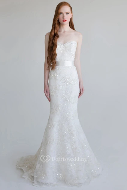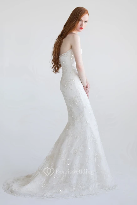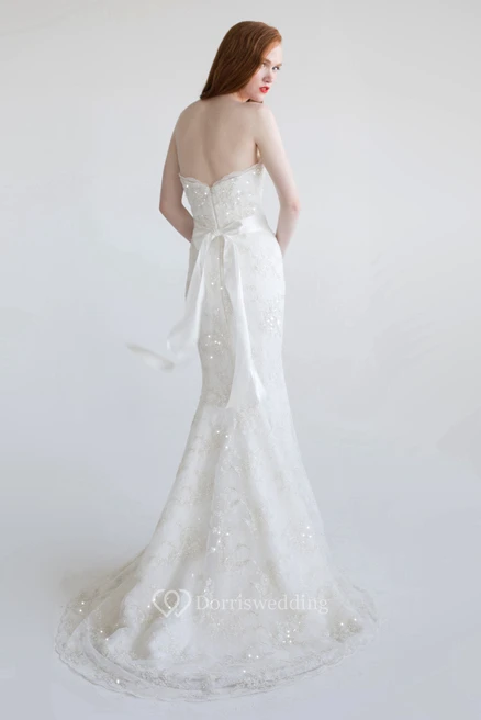 Trumpet Floor-Length Beaded Sweetheart Sleeveless Lace Wedding Dress With Sequins