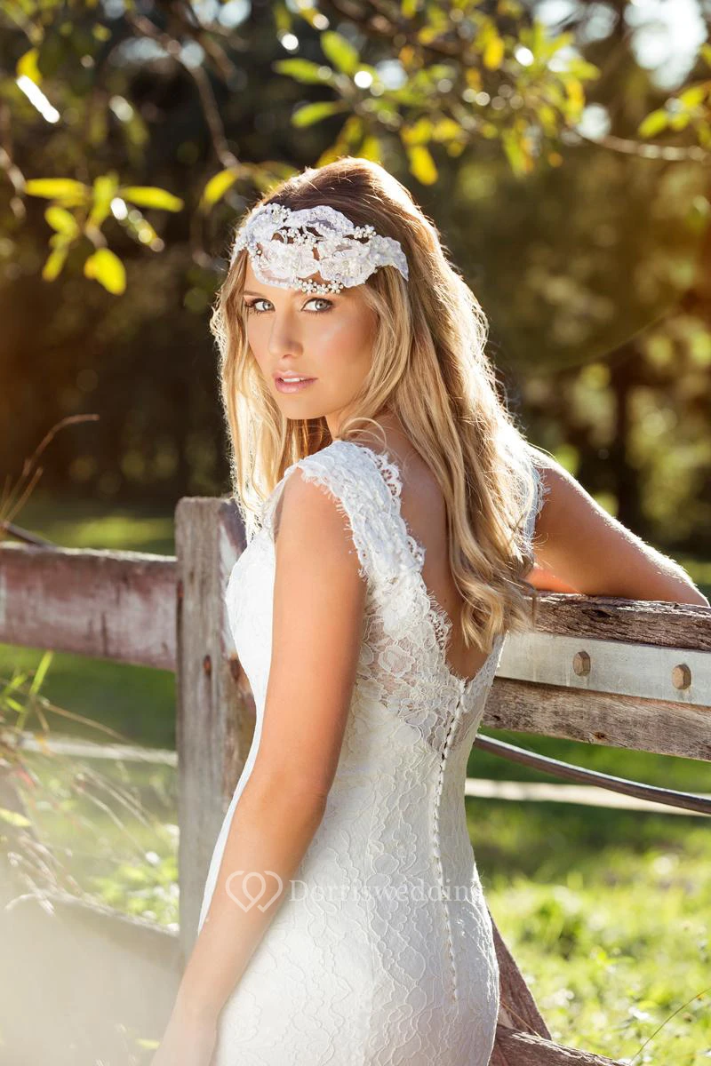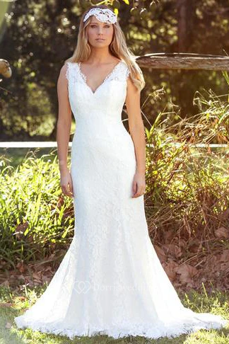 Trumpet Floor-Length Sleeveless V-Neck Lace Wedding Dress Styles With V Back