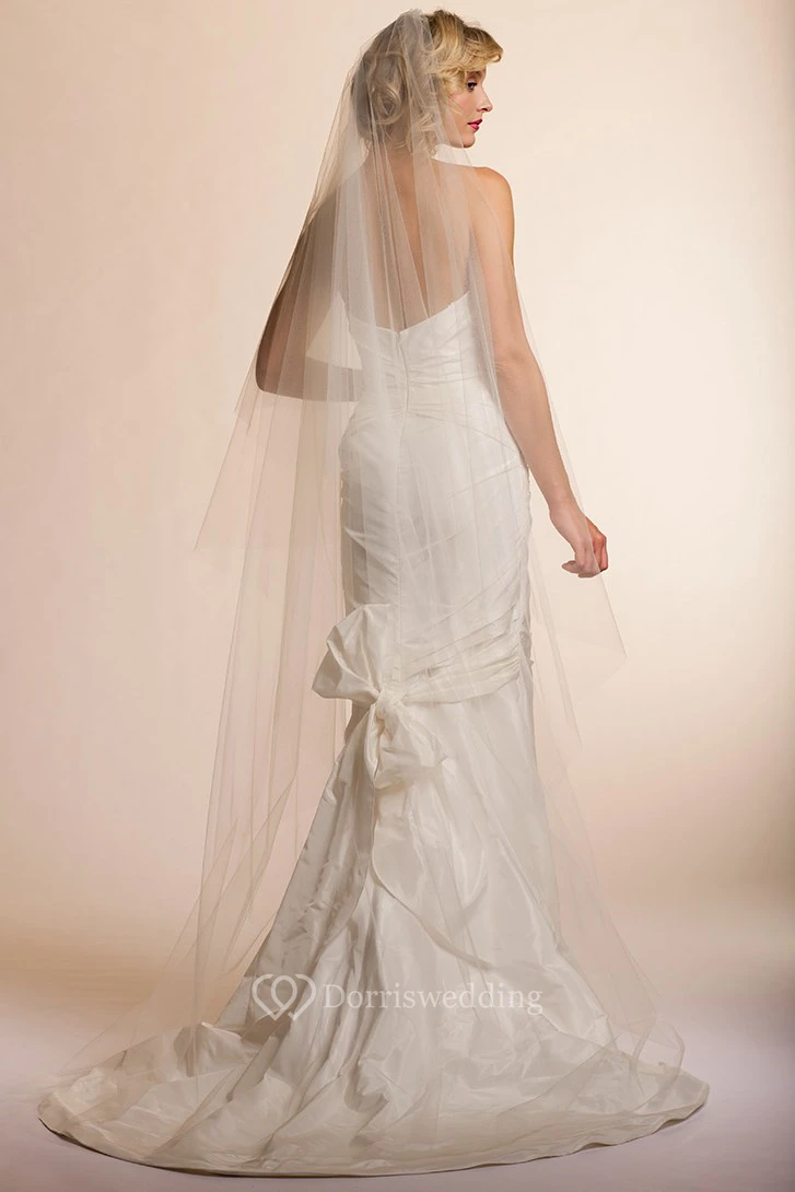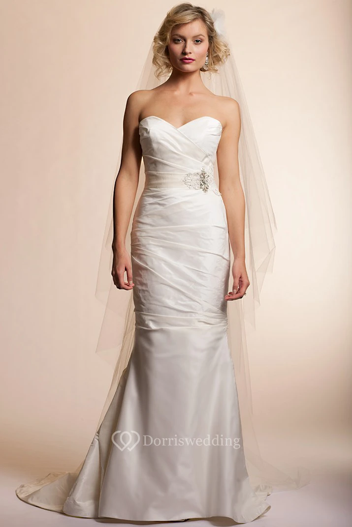 Trumpet Floor-Length Sweetheart Satin Wedding Dress With Criss Cross And Bow