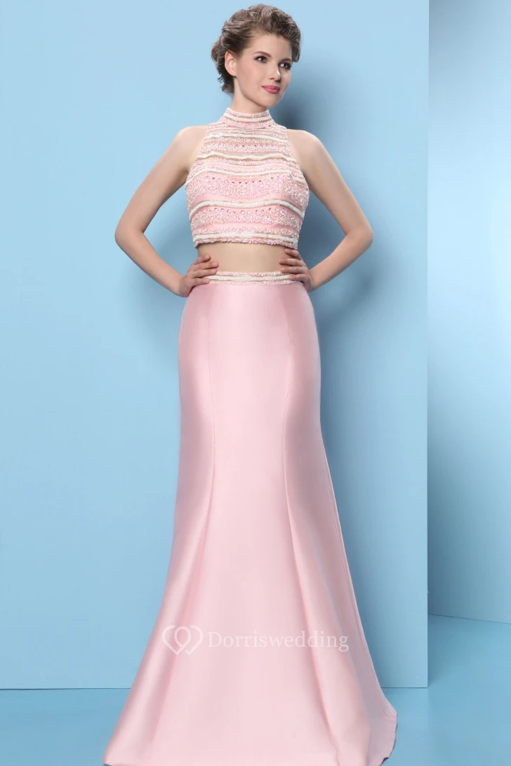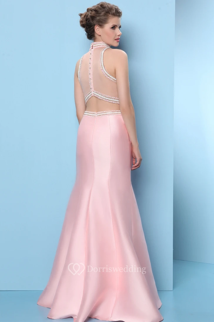 Trumpet High-Neck Beaded Long Sleeveless Satin Prom Dress