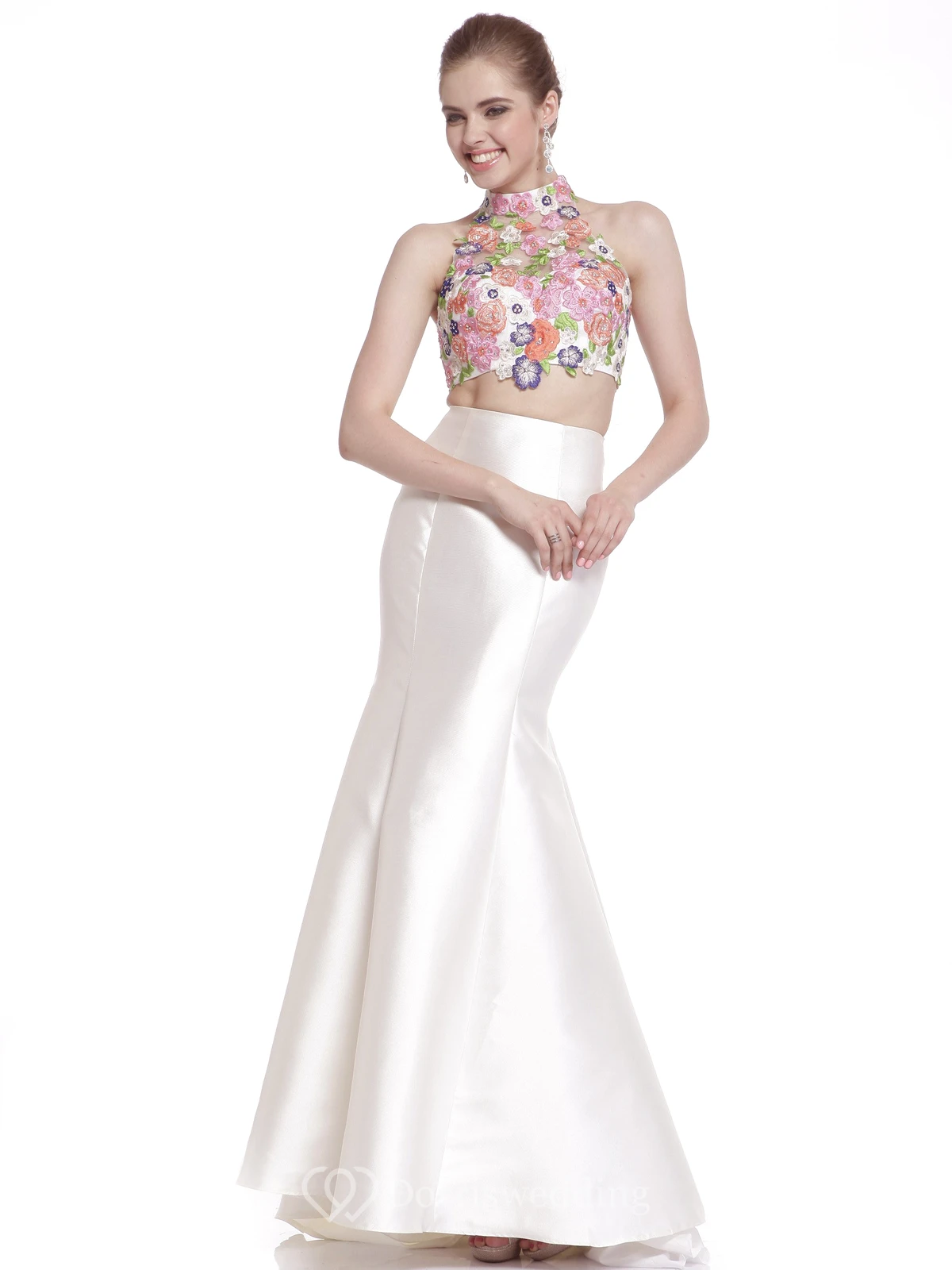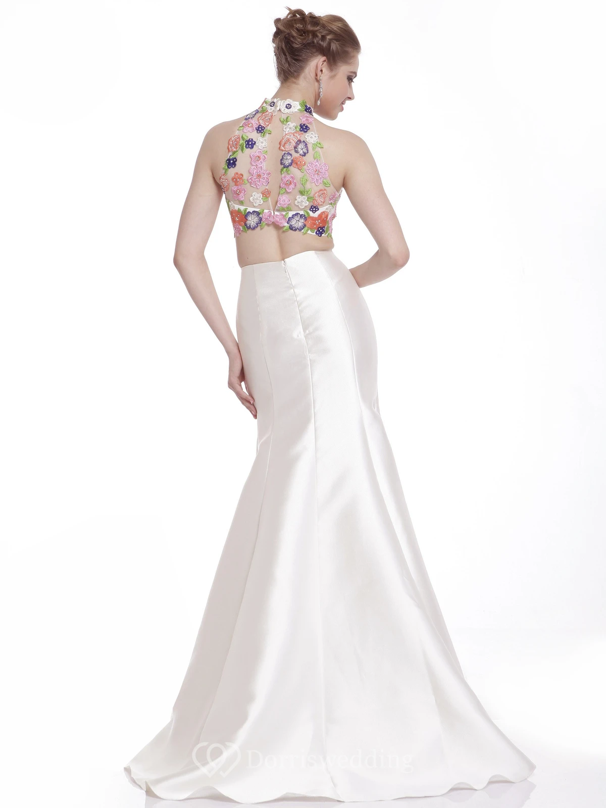 Trumpet High Neck Sleeveless Satin Illusion Dress With Appliques