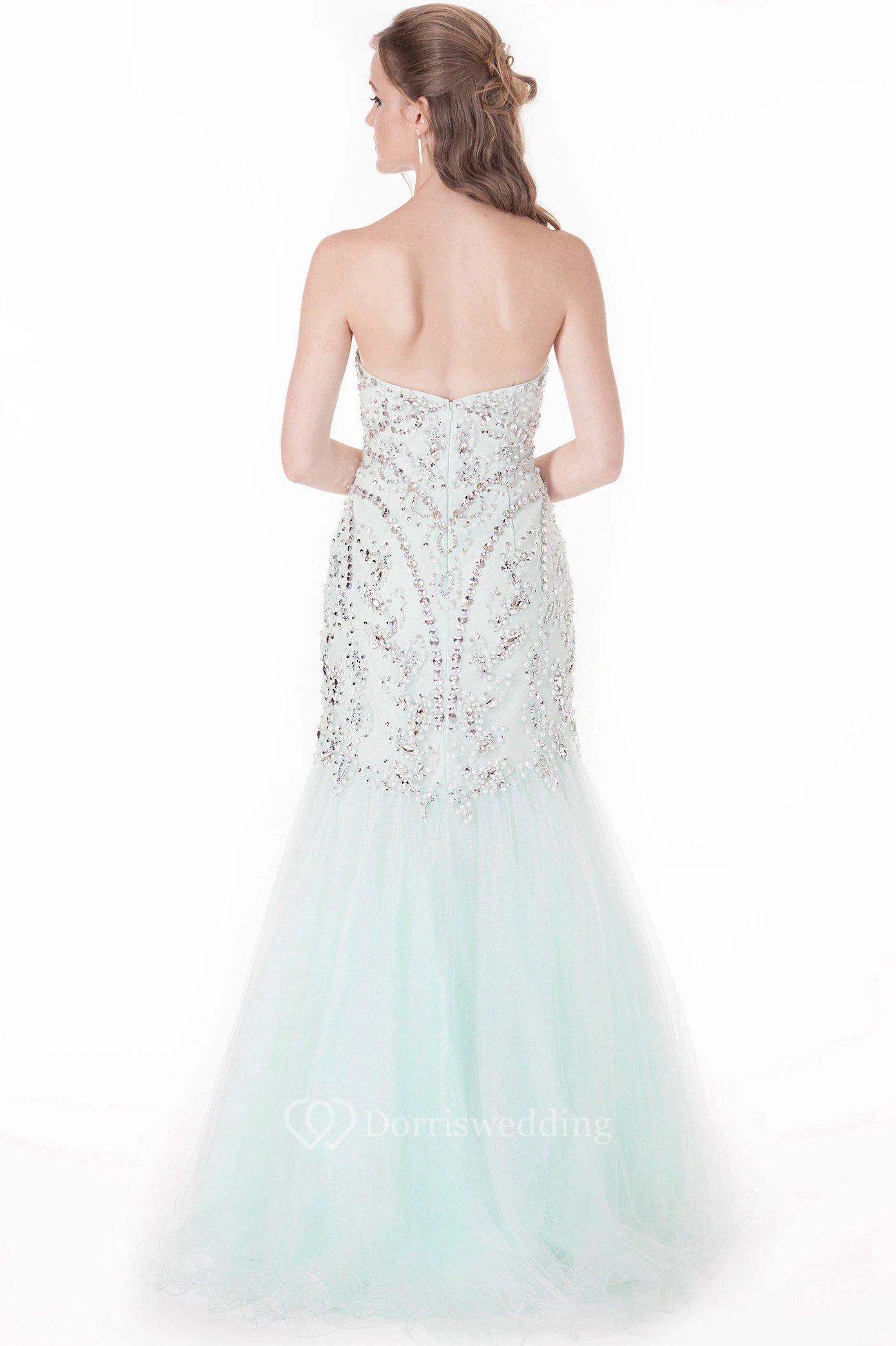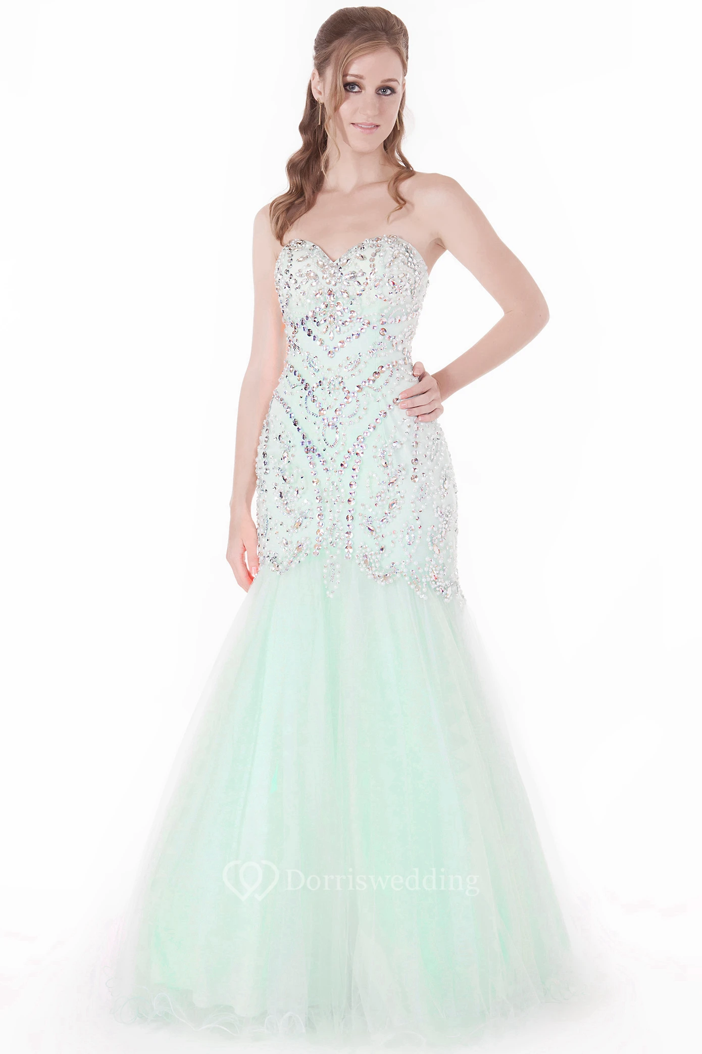 Trumpet Long Sleeveless Beaded Sweetheart Tulle Prom Dress