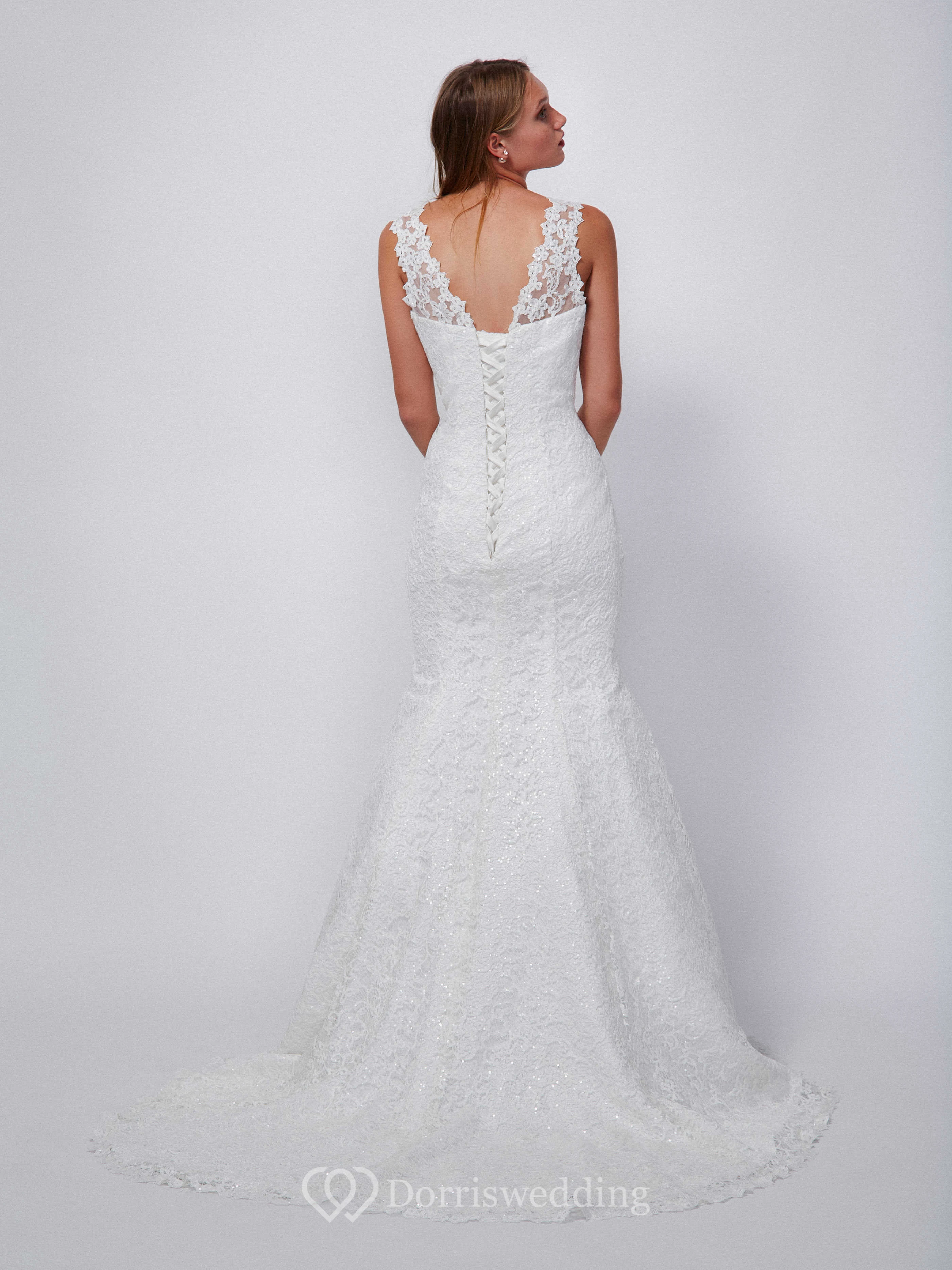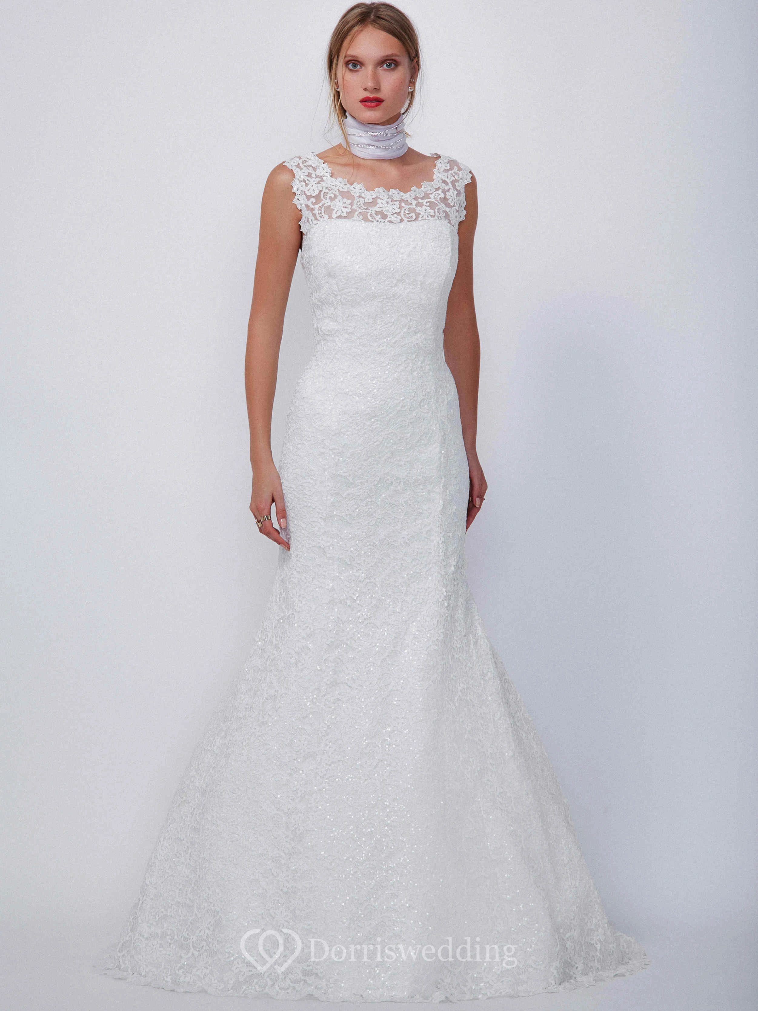 Trumpet Long Square-Neck Sleeveless Lace Wedding Dress