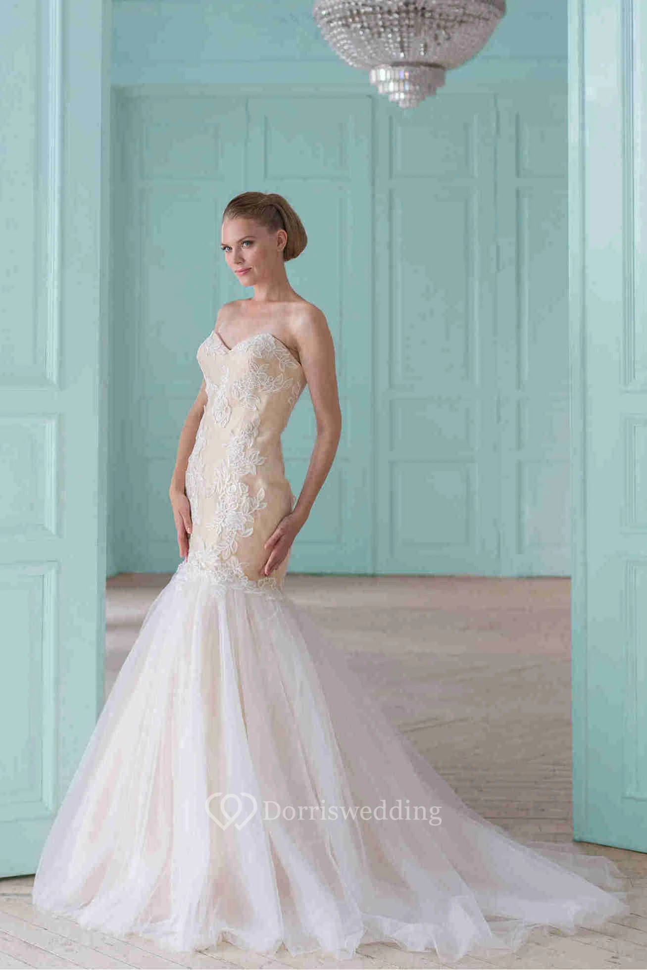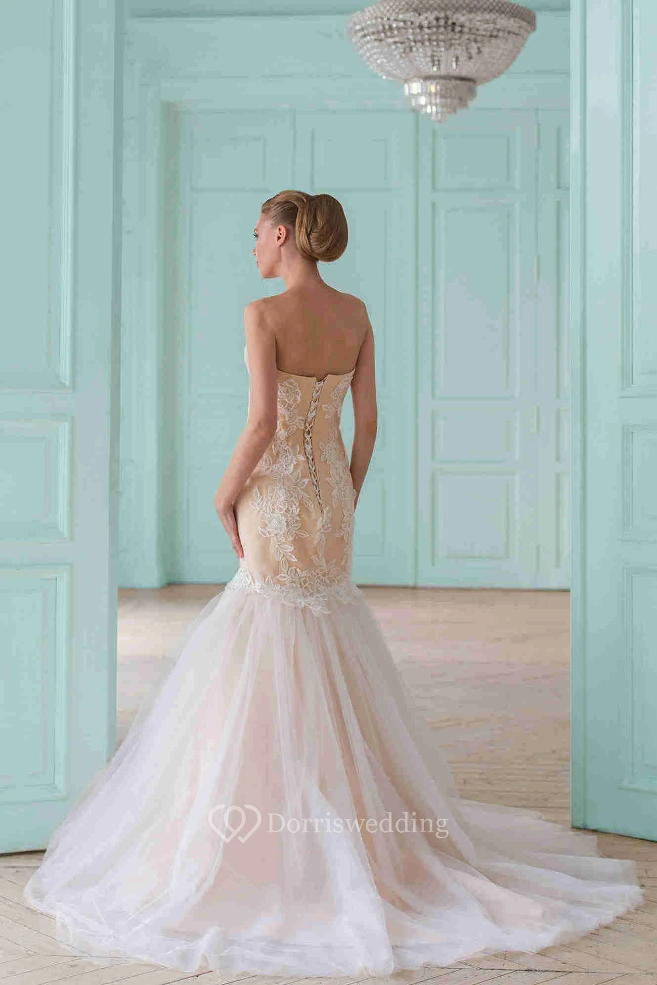 Trumpet Long Sweetheart Tulle&Lace Wedding Dress With Corset Back