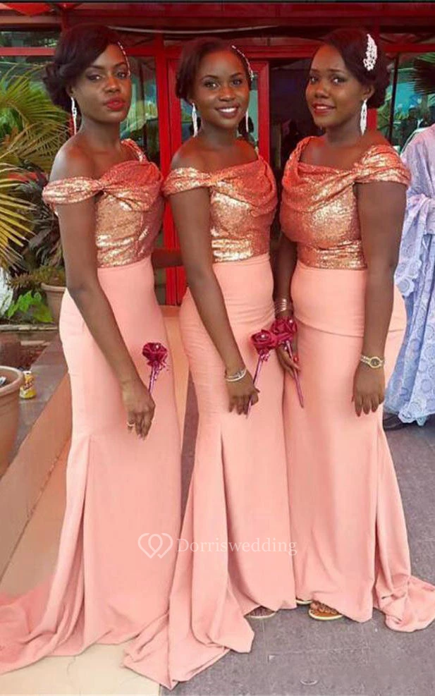 Trumpet Maxi Off-the-shoulder Sleeveless Beading Chiffon Sequins Dress