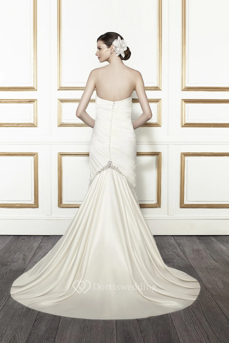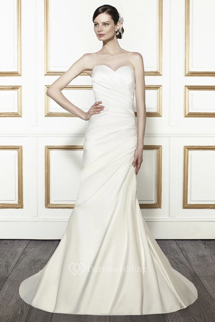 Trumpet Maxi Sweetheart Beaded Satin Chiffon Wedding Dress With Side Draping And Brush Train