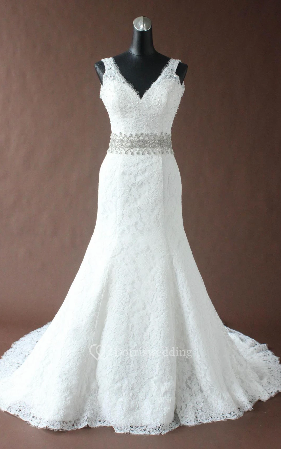 Trumpet Maxi V-Neck Beading Lace Sequins Dress