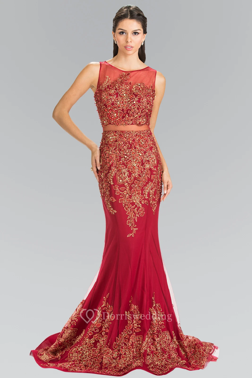 Trumpet Scoop-Neck Sleeveless Jersey Dress With Appliques And Beading