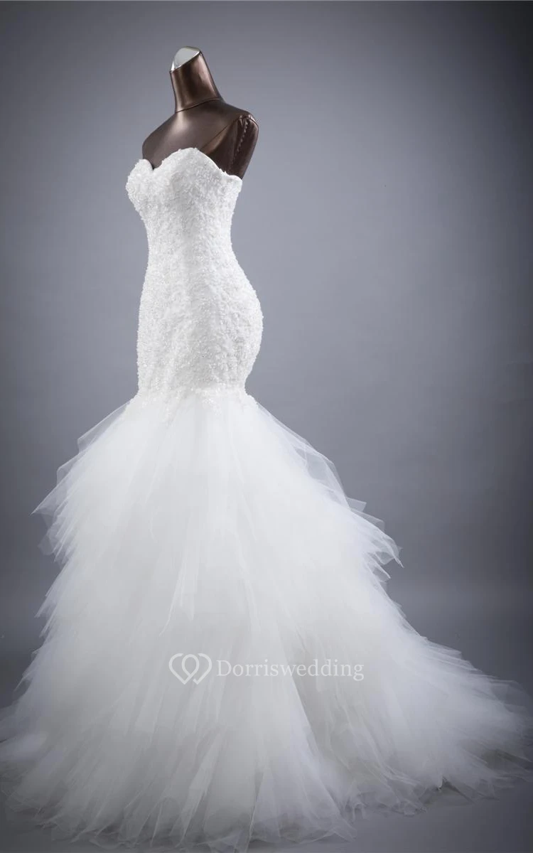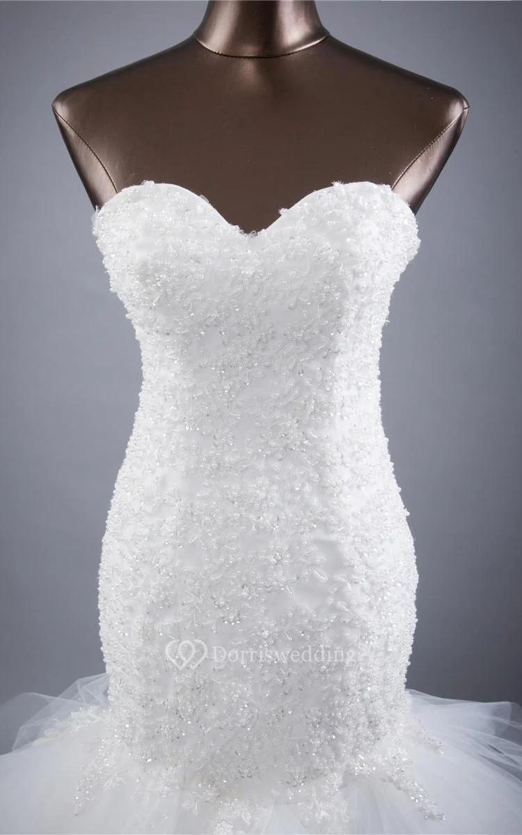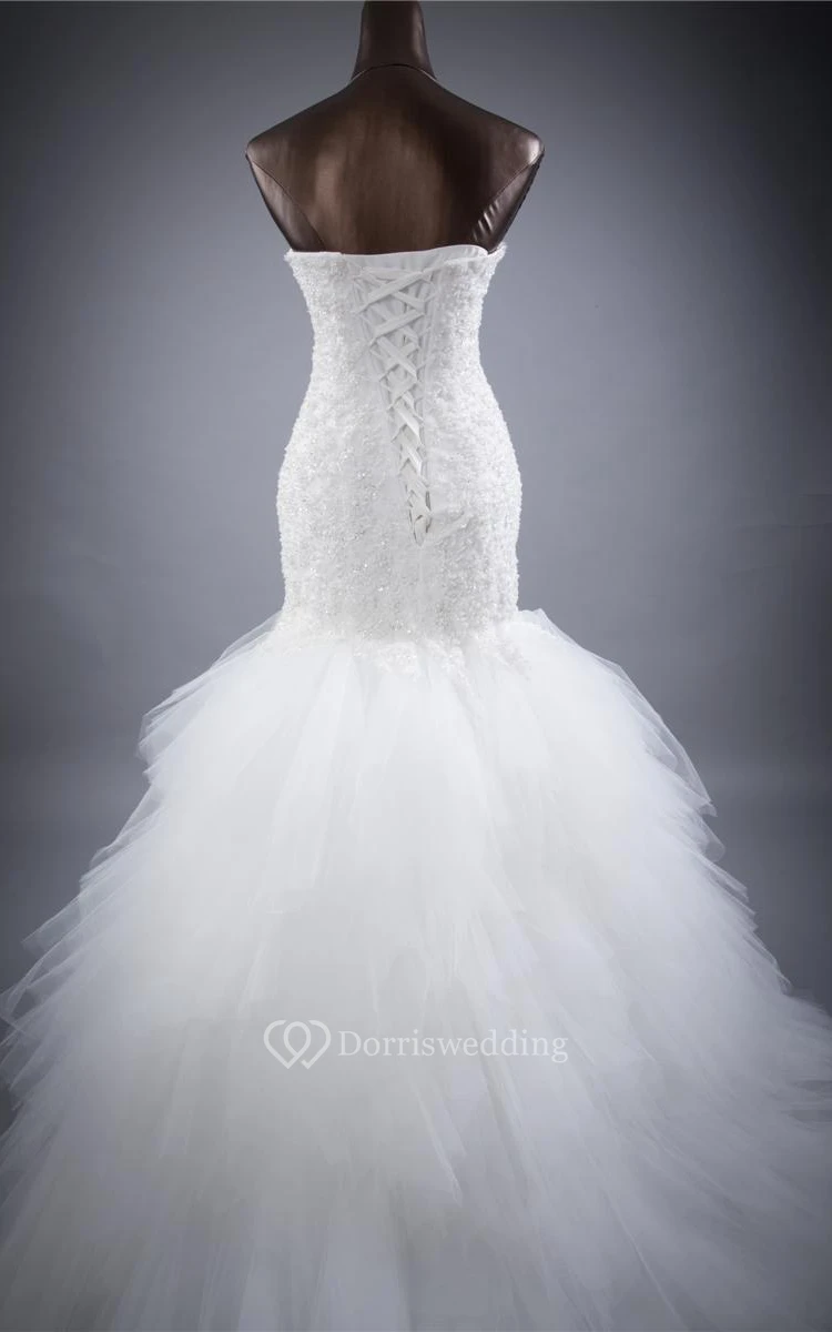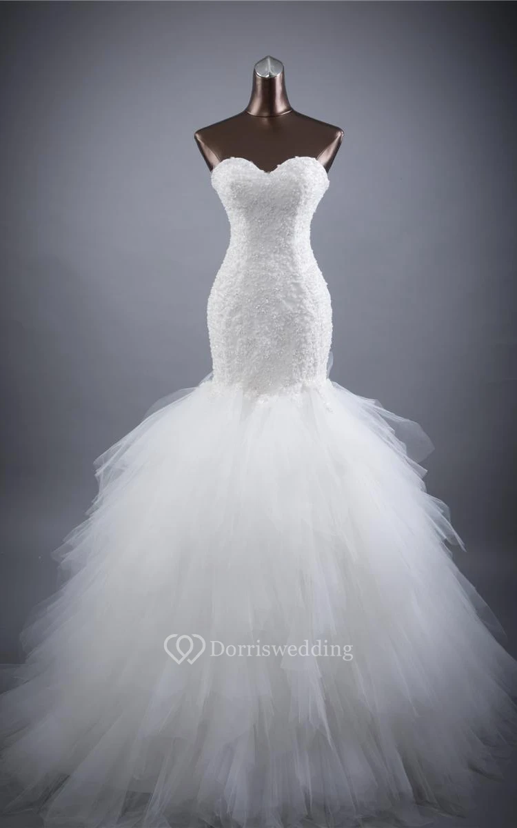 Trumpet Sleeveless Flower Lace Organza Satin Dress