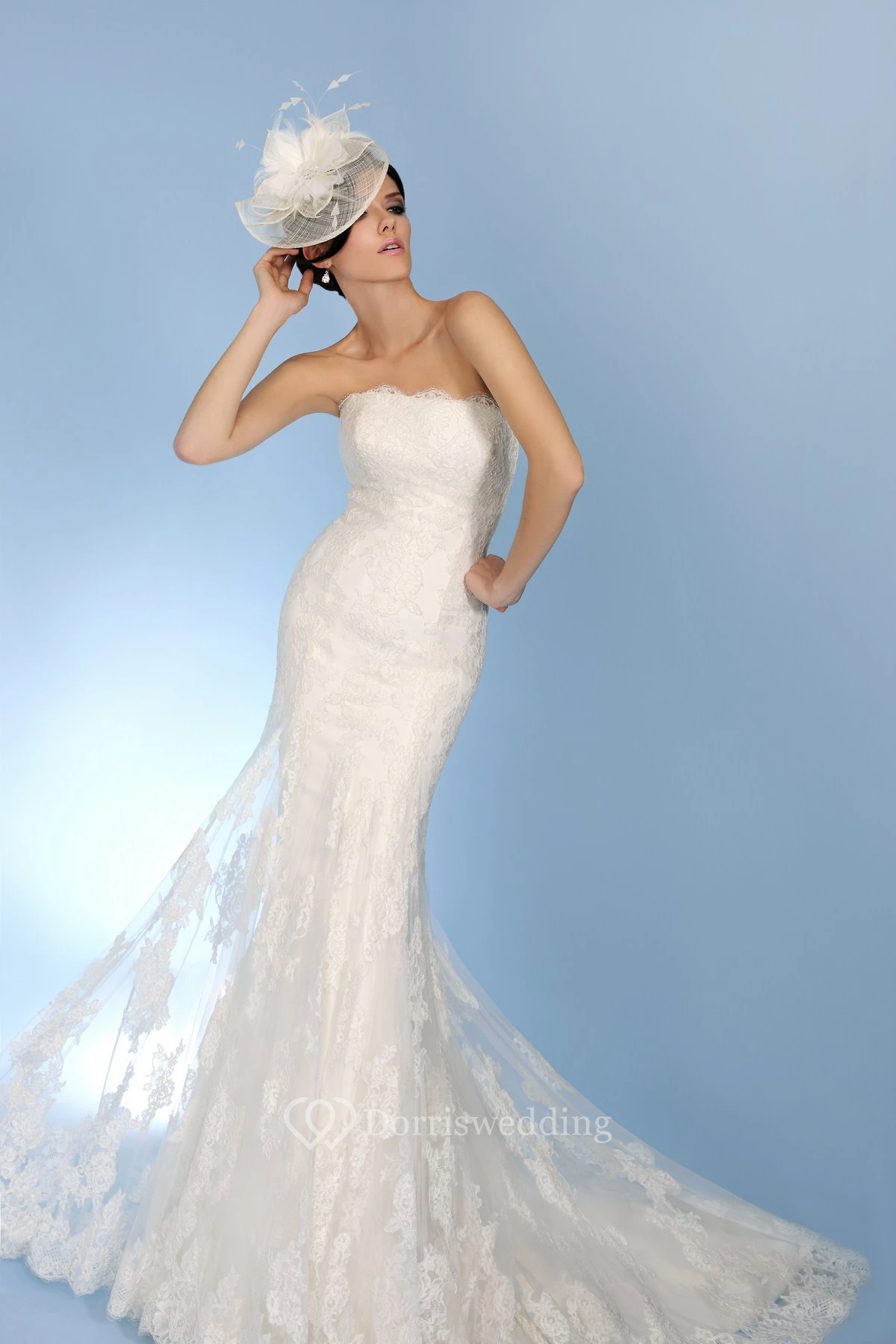 Trumpet Strapless Appliqued Floor-Length Sleeveless Lace Wedding Dress With Backless Style And Pleats