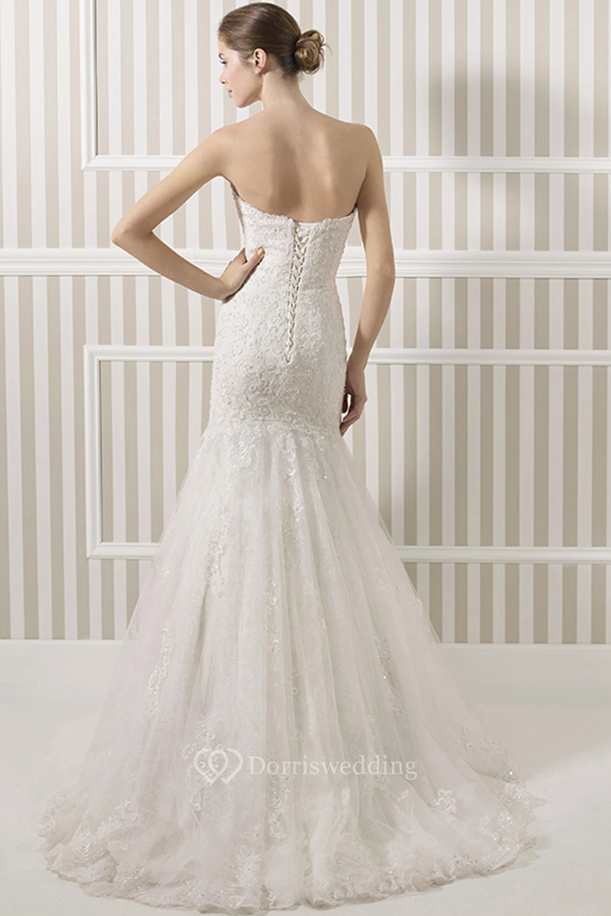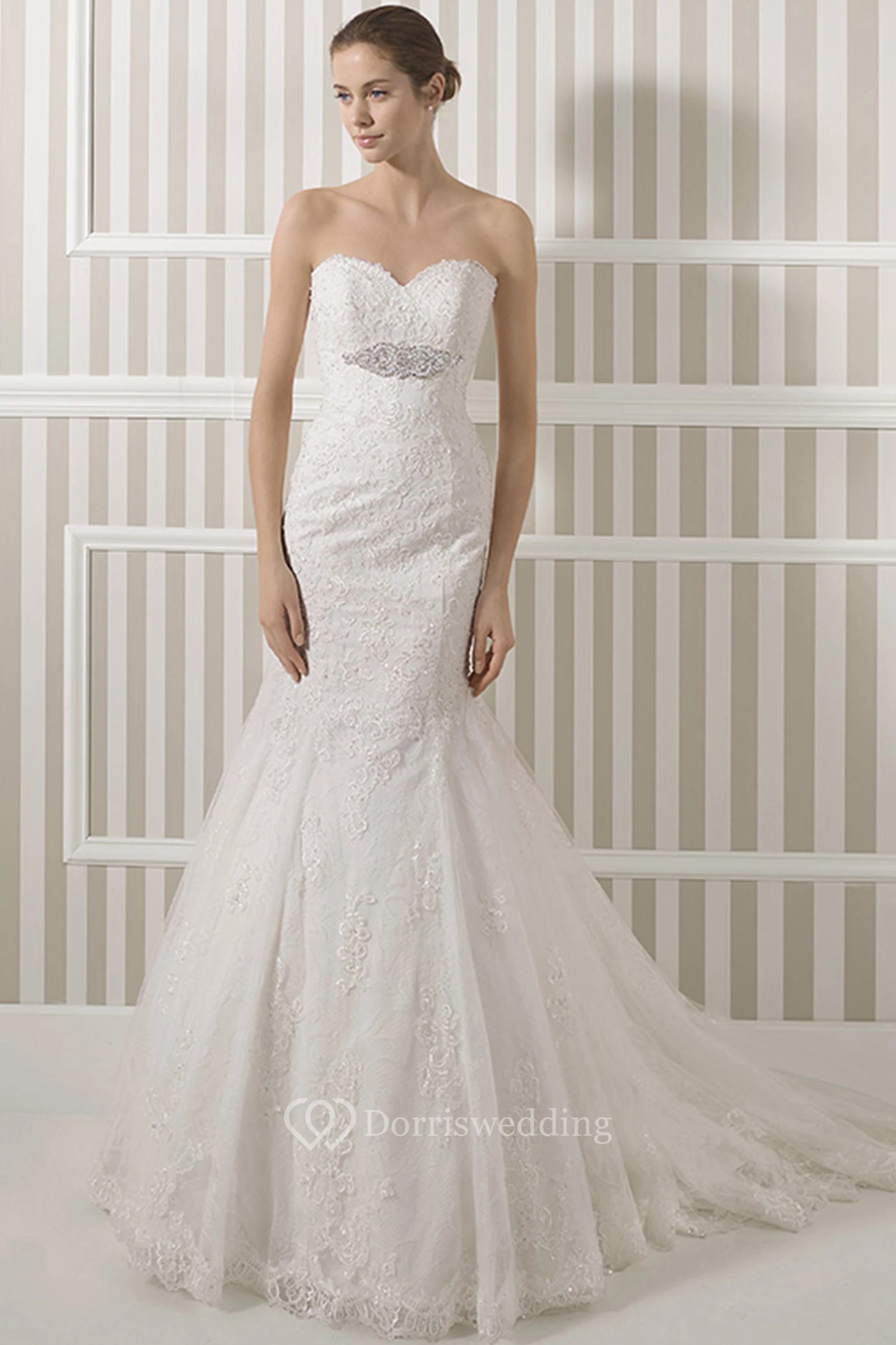Trumpet Sweetheart Floor-Length Lace Wedding Dress With Waist Jewellery And Corset Back