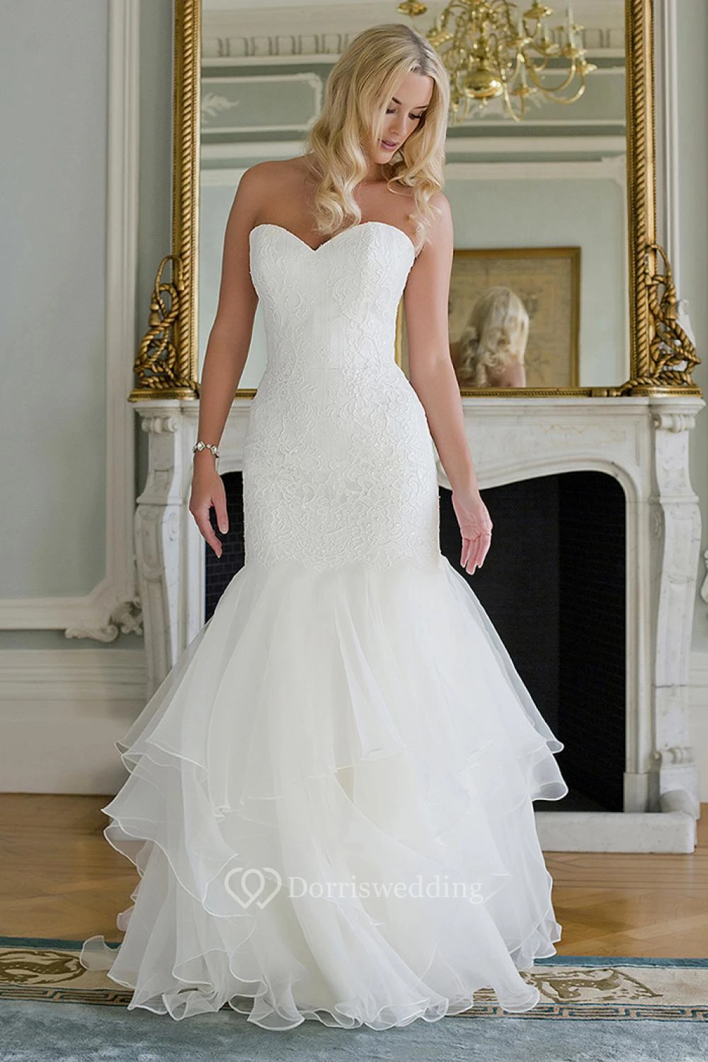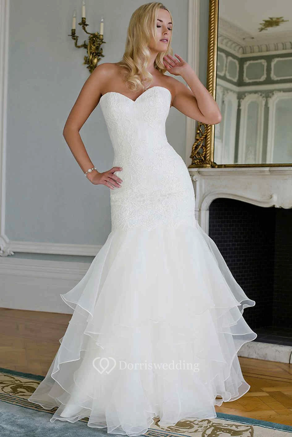 Trumpet Sweetheart Maxi Lace&Organza Wedding Dress With Draping