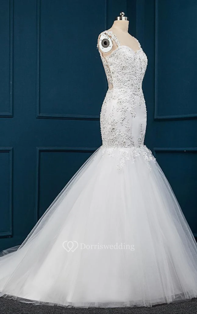 Trumpet Sweetheart Sleeveless Beading Tulle Lace Dress