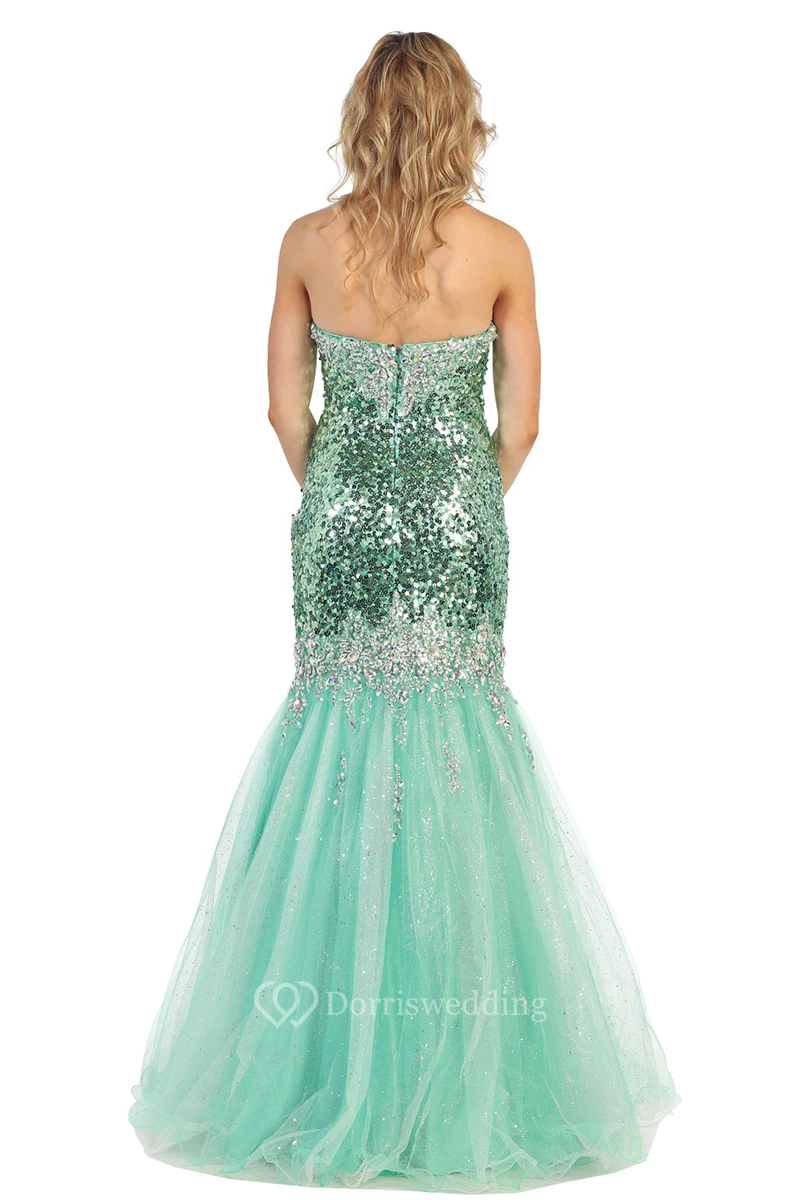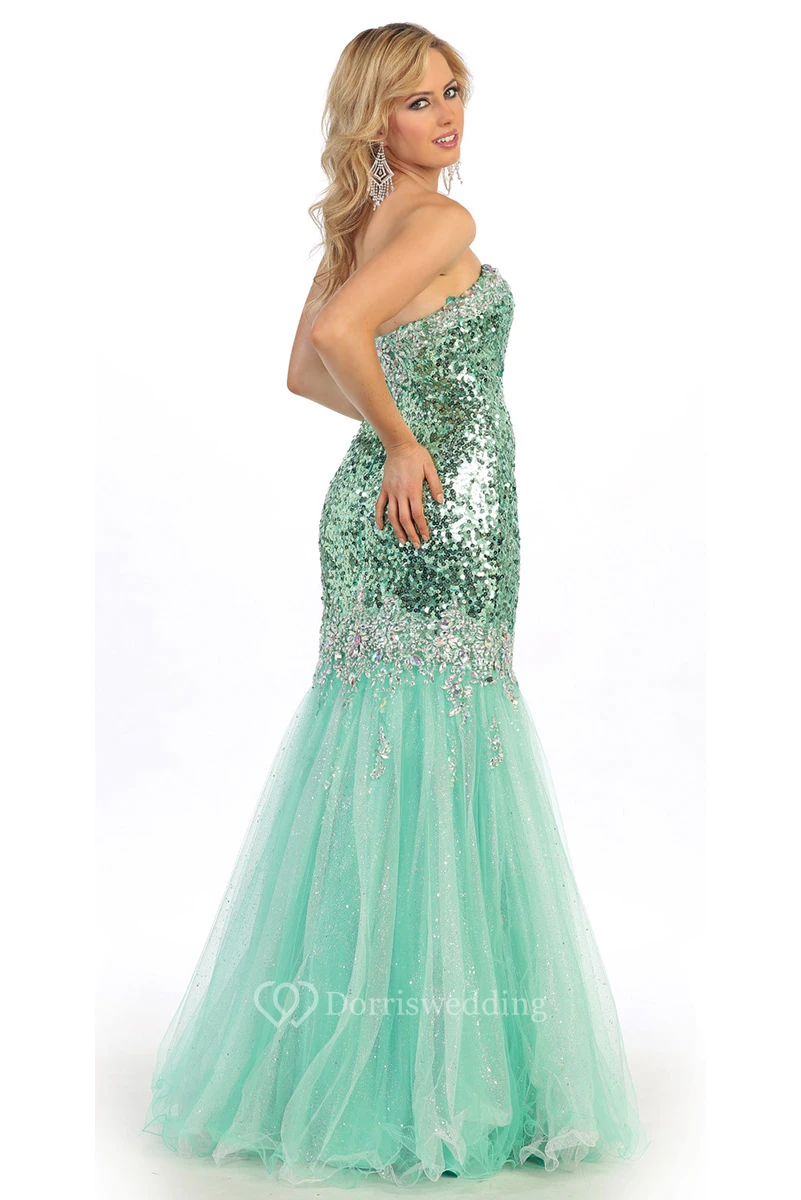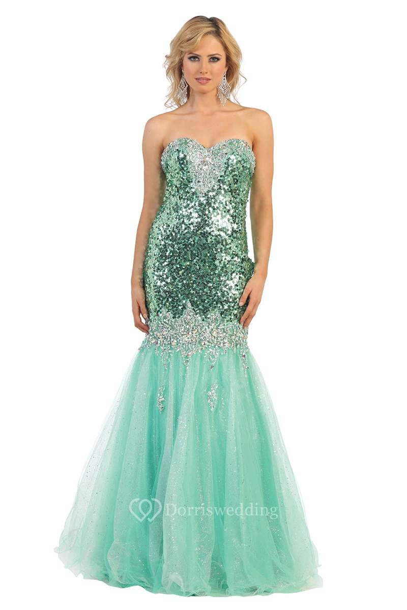 Trumpet Sweetheart Sleeveless Tulle Sequins Dress With Beading